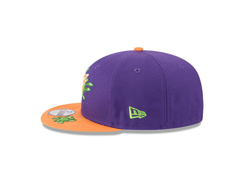 Let your kiddo showcase their love for their team and the nostalgia of Nickelodeon with this unique New Era 9FIFTY Snapback. This hat blends the classic snapback style with the iconic imagery of Nickelodeon's slime, creating a bold and playful design. The raised embroidered graphics and six-panel construction with eyelets offer a comfortable and stylish fit. The green undervisor adds a pop of color, making it a standout piece for any teams fan who grew up with Nickelodeon.