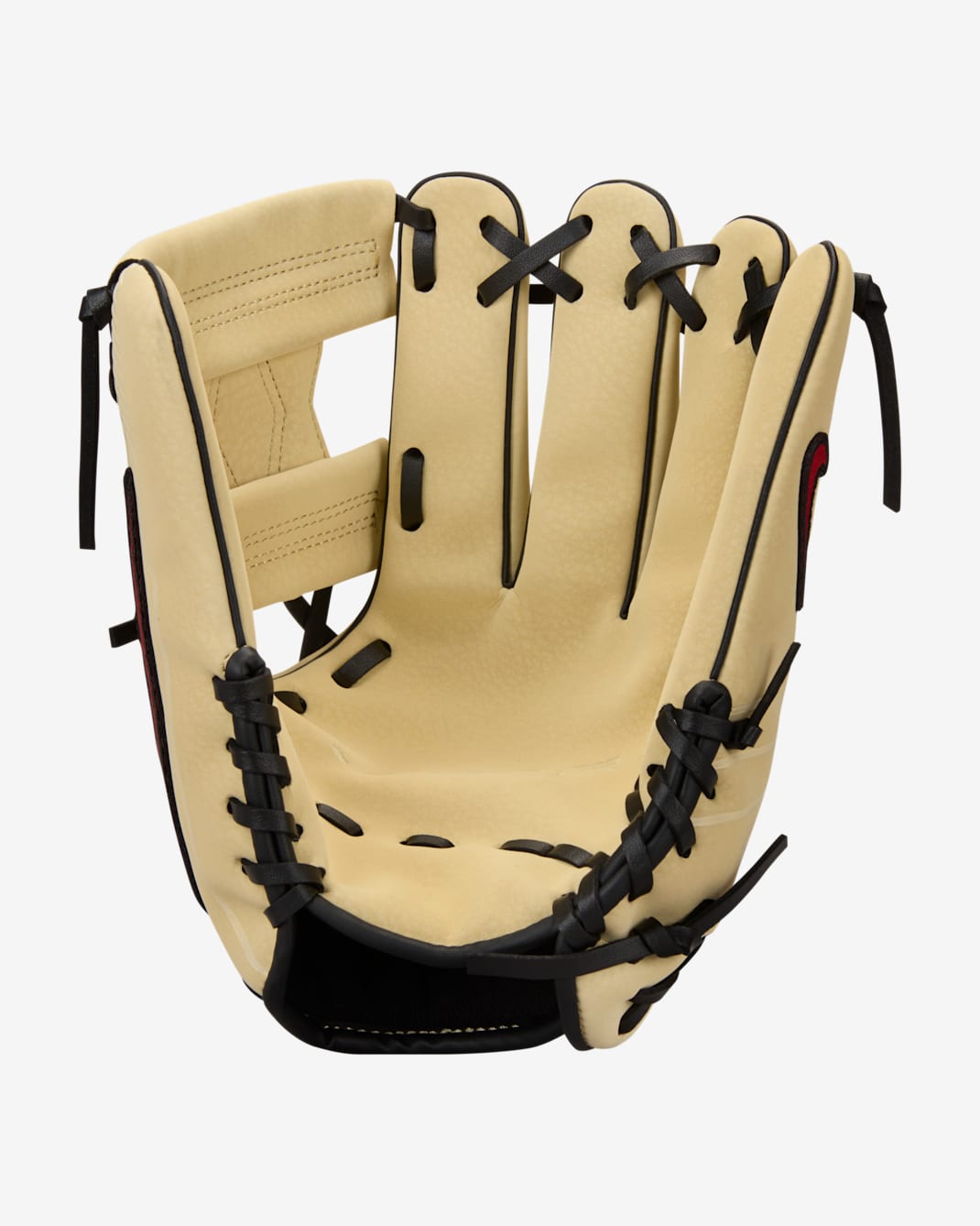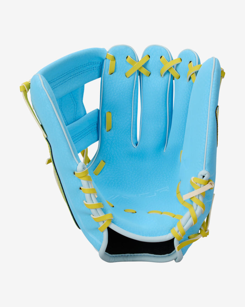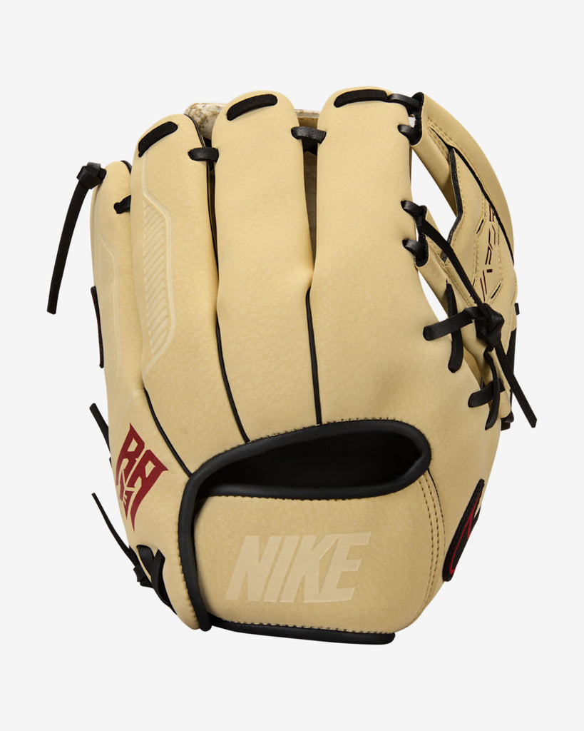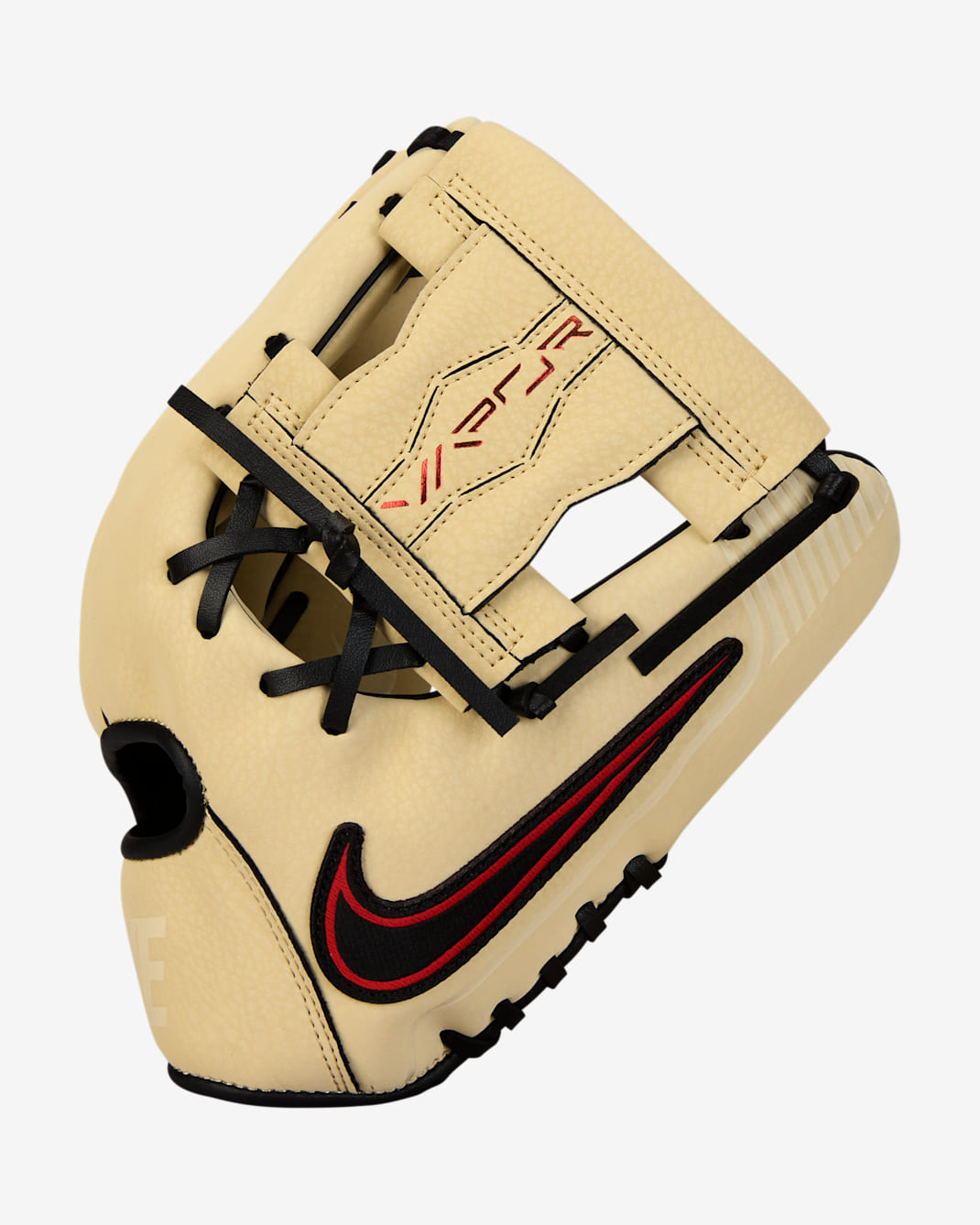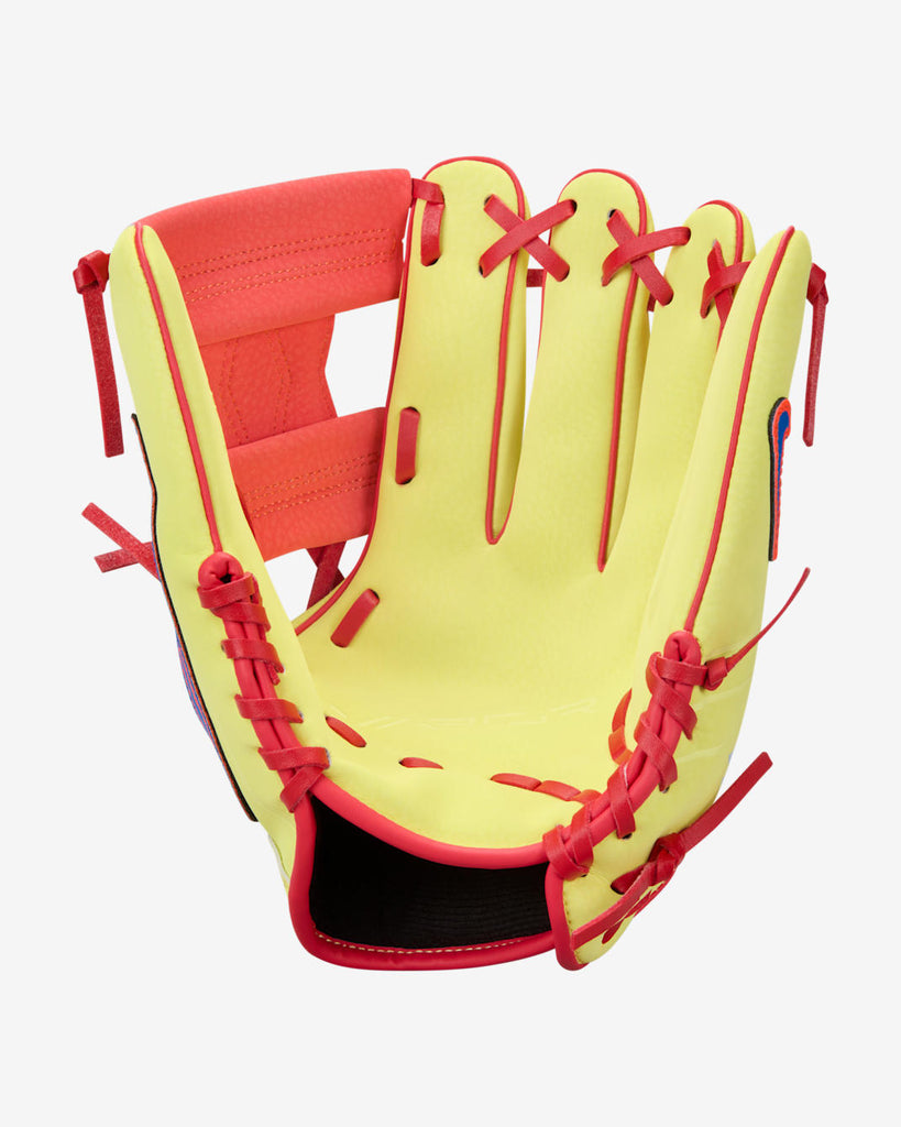 Grounded in baseball tradition, Nike Vapor is the result of state-of-the-art innovation and design excellence. Acuña’s signature version amps up the flash with colors inspired by his swagger and fearless, youthful energy, so you can make merciless plays in all-out style. It's designed with lightweight, synthetic material that's flexible for more give and natural hand movement, while flat welting on the fingers adds support and structure.