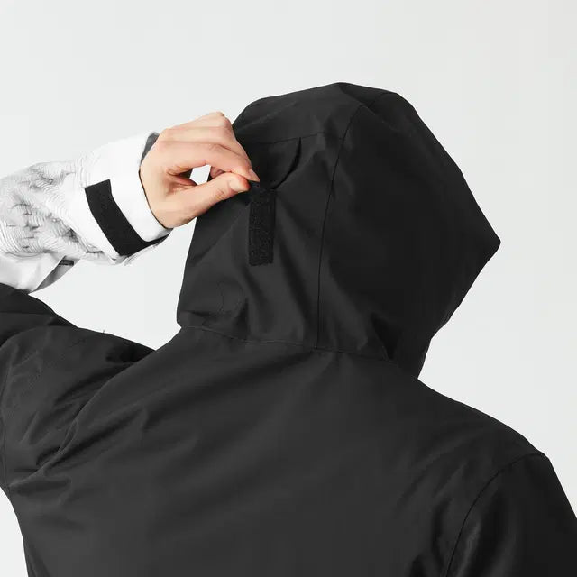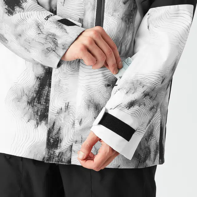 The JOMOH JKT is designed to tackle the elements with style and functionality while you ride. This 2-layer jacket, certified by GRS (Global Recycled Standard) and Oeko-Tex® Standard 100, meets strict standards for sustainable and ethical production. Equipped with Dryplay 10K technology and a PFC-free Teflon Ecoelite™ water-repellent coating, this jacket ensures both waterproofness and breathability, keeping you comfortable and dry during your mountain adventures. The functional features are numerous, including an ergonomic hood with a unique adjustment system, hand pockets, and a chest pocket, all with zippers under flaps for better water resistance. It also has underarm ventilation zips and an adjustable hem with a drawstring. The integrated snow skirt, ski pass pocket, and inner mesh pocket complete the model.