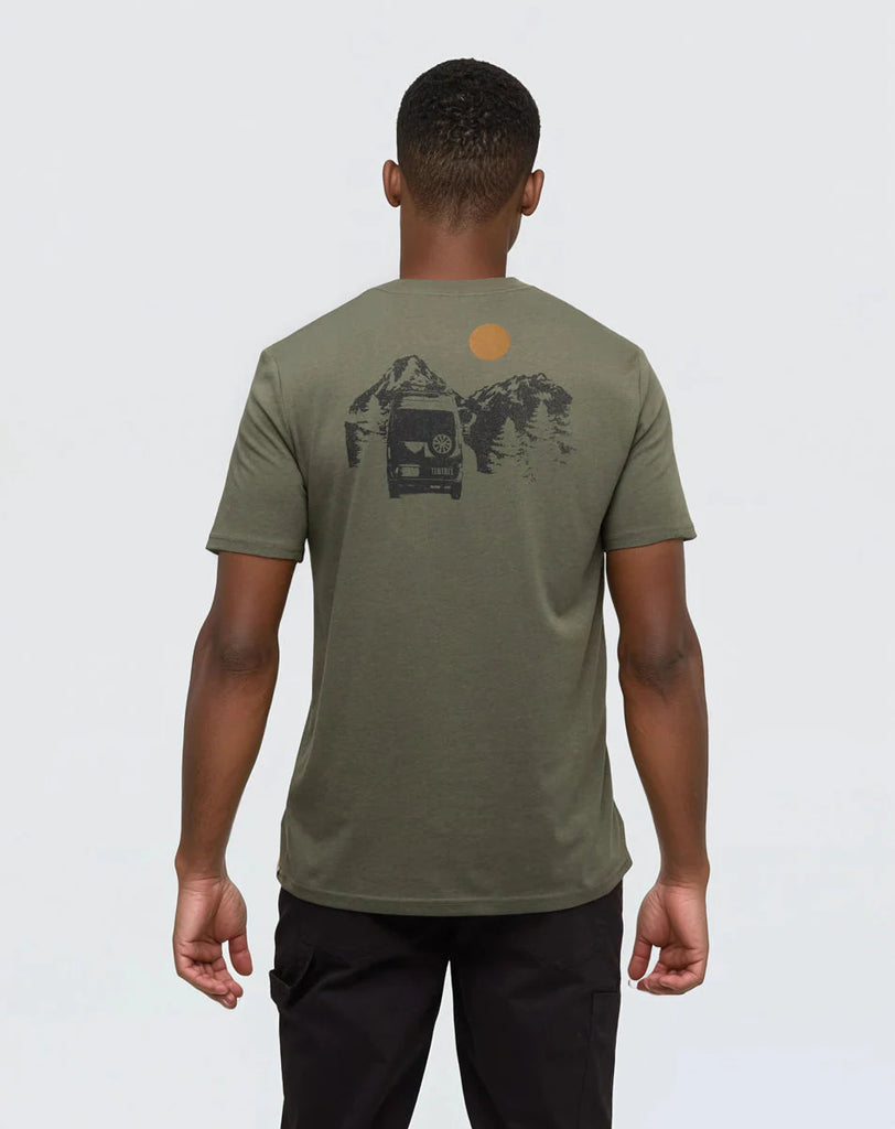 Tentree Men's Mountain Pass T-Shirt - DEEP OLIVE METEORITE BLACK / M is backordered and will ship as soon as it is back in stock.