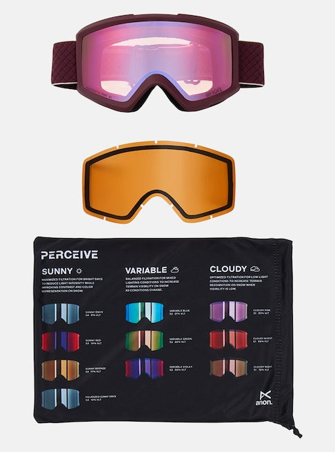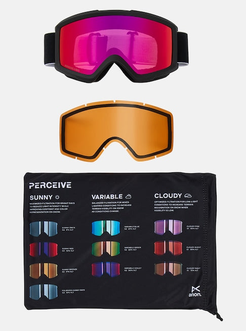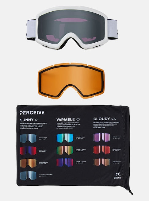 The Anon Helix 2.0 Goggles offer the terrain-defining clarity of our PERCEIVE lens with the wide field of view and low-profile design of a cylindrical lens. Full-perimeter venting and our best anti-fog treatment maintain sharp optics through a wide range of temps and weather conditions. They are over the glass compatible and include a bonus lens so you can choose the best tint for the conditions. They are over the glasses compatible and include a microfiber bag for storage and lens cleaning.