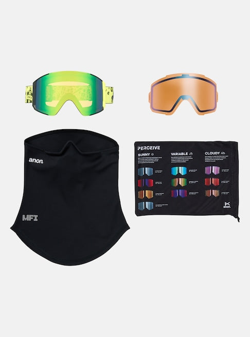 The Anon Sync Goggles offer the terrain defining-clarity of PERCEIVE optics and the convenience of our M-Fusion magnetic latch system to secure and guide lenses into place. Full-perimeter venting ensures maximum airflow for a clear, fog-free view in all conditions. They are over the glass compatible for wearing with eyeglasses and include a bonus lens for cloudy conditions plus a microfiber bag for storage and lens cleaning.