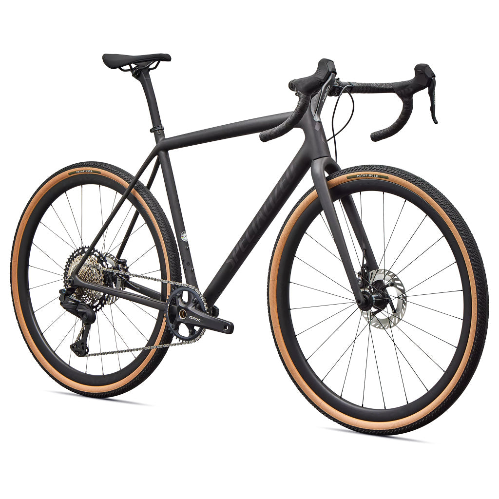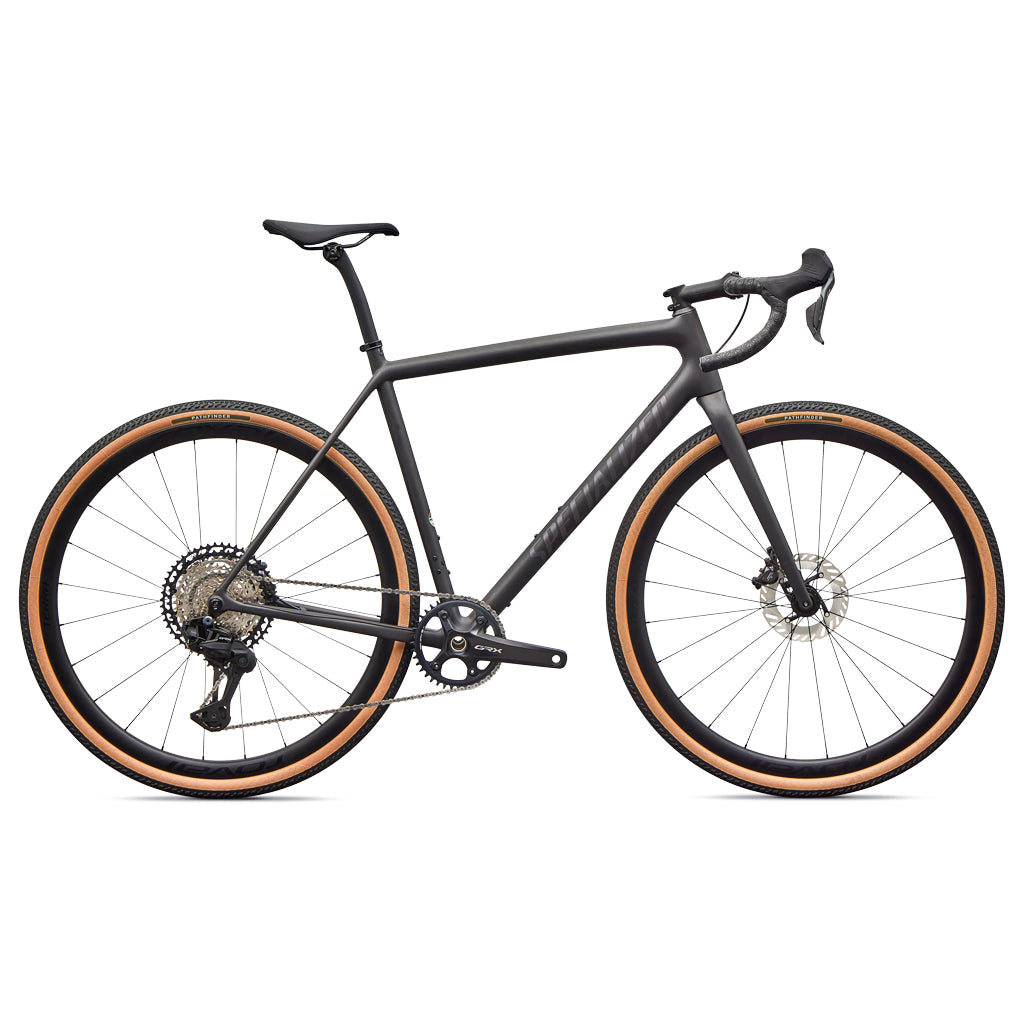 This Crux Expert comes spec'd with Shimano’s GRX Di2 1x12 800 Series hydraulic disc groupset with wireless shifting, lightweight and durable Roval Terra C Disc wheels, and 2Bliss Ready, 700x40mm Pathfinder tires that hookup over nasty terrain."