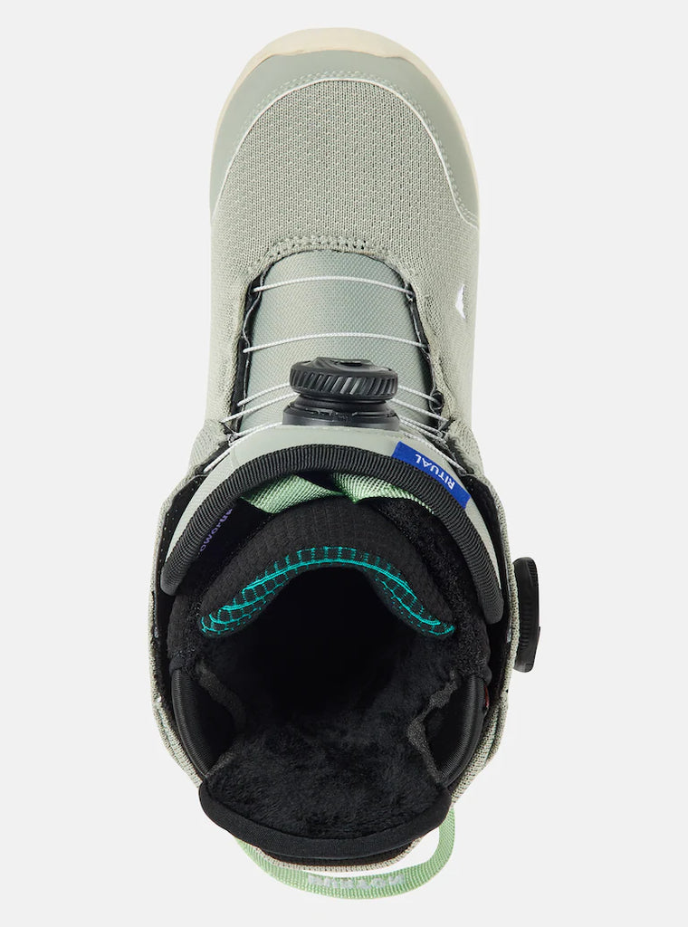 The women's Burton Ritual BOA® Snowboard Boots are in a league of their own. Think foot-hugging comfort and cushioning that doesn't weigh you down, plus a medium-stiff ride for all-terrain riding. Their unmatched lightweight feel and supremely adjustable fit set you up for cruising and blasting the day away, from groomer to trees and park to natural features. Add our warmest liners, and we're talking happy feet that leave you focused on what run to hit next.