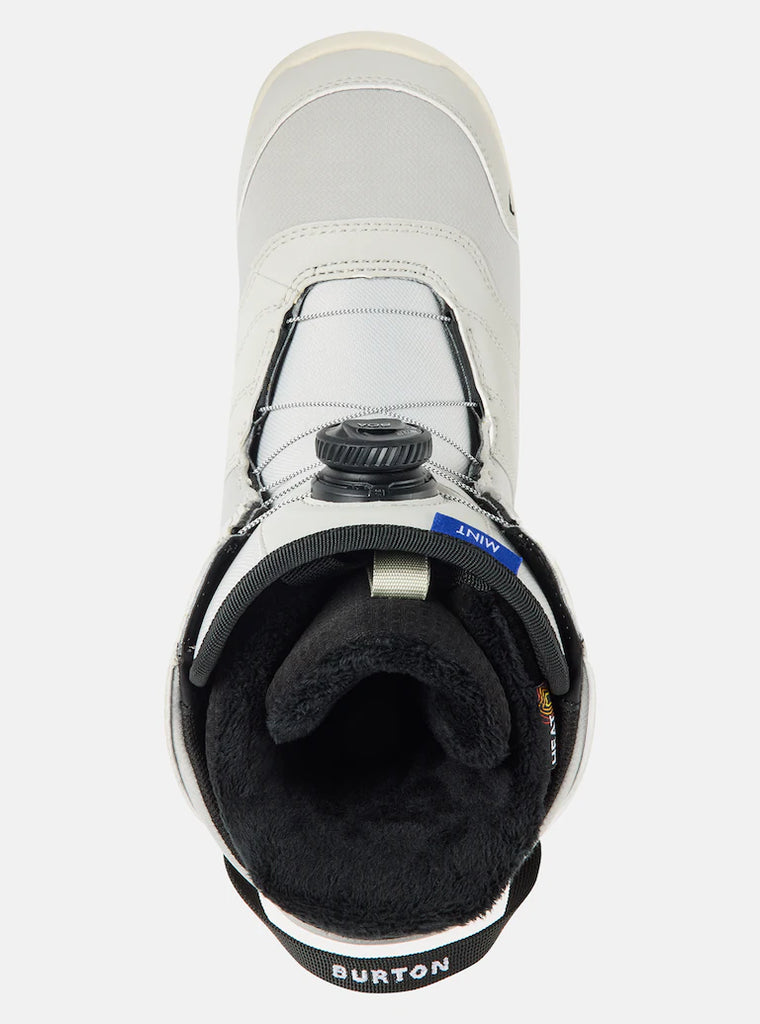 Soft, forgiving, and quick to adjust, the women's Burton Mint BOA® boots are ready for progression right out of the box. Their relaxed ride lets you explore and experiment with terrain. A lightweight feel inspires a responsive ride, while the micro-adjustable lacing lets you fine tune the fit and feel to match the day, the run, and your style with the quick turn of a dial. And you can say hello to the kind of warmth that keeps excited to keep the laps going all winter long.