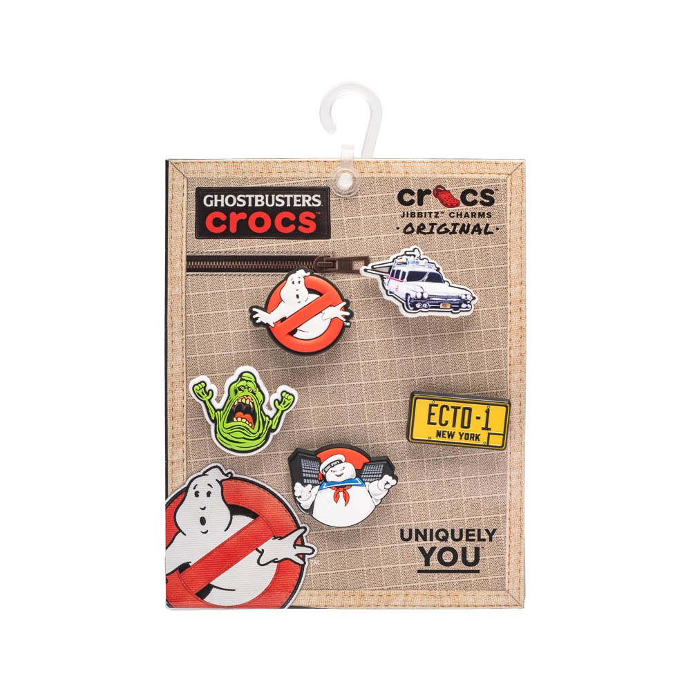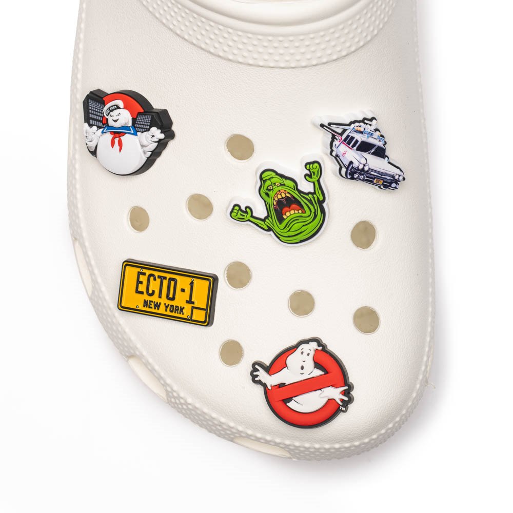 Show the world you ain't afraid of no ghost with the new Ghostbusters Crocs Jibbitz™ Shoe Charms 5 Pack! The perfect way to accent your throwback style, this variety pack includes an assortment of shoe charms with iconic characters like Slimer, The Stay Puft Marshmallow Man, and more!