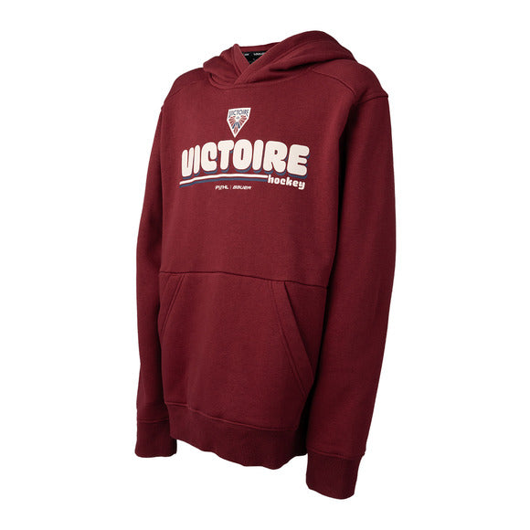 Support your team and the entire women’s game with the BAUER x PWHL apparel collection. Represent the Montreal Victoire with pride with the Bauer Ultimate PWHL - Montreal Victoire junior hoodie. This garment displays the team’s new look so everyone can know where your fandom lies.