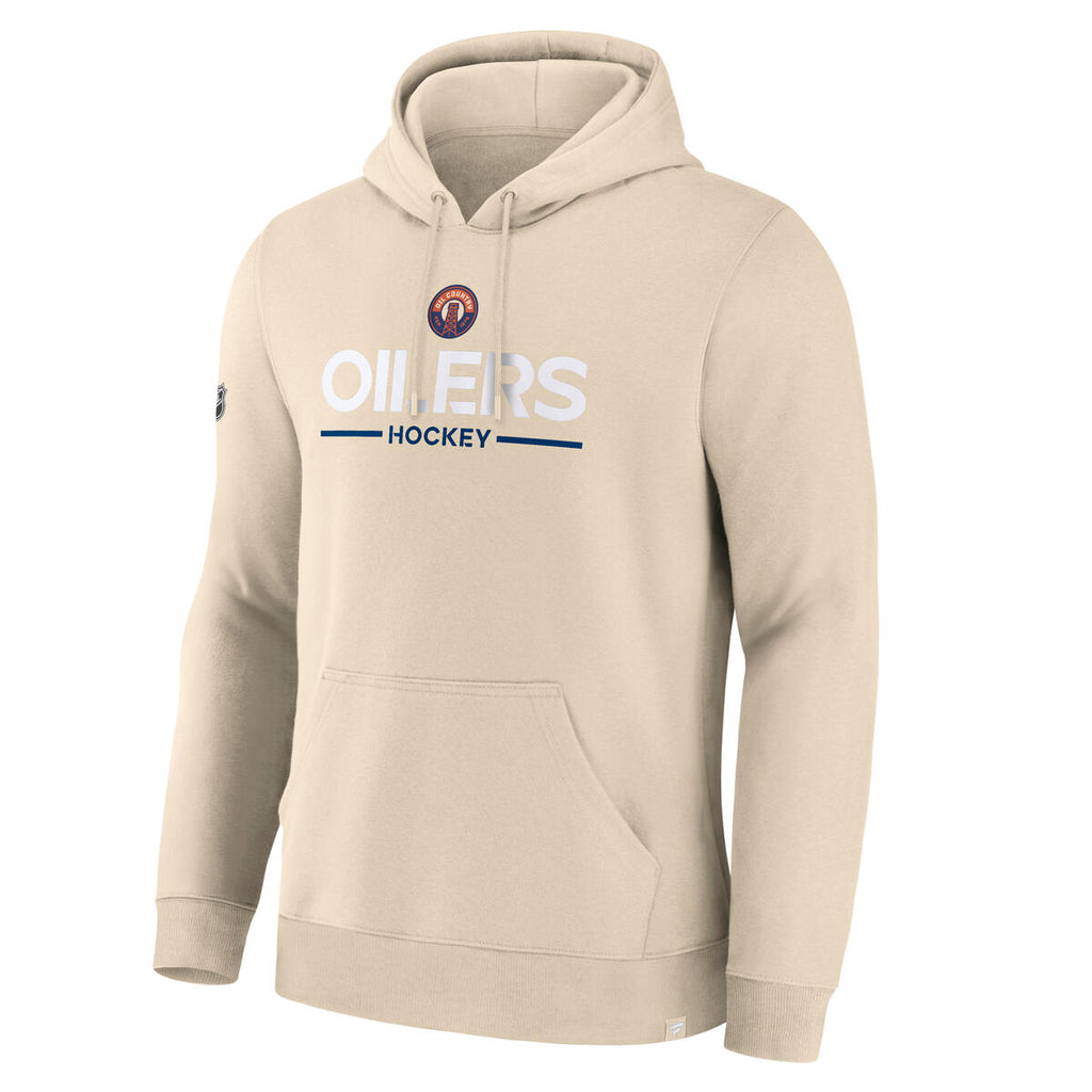 Stay warm and comfy in this Edmonton Oilers Authentic Pro Alternate Hoodie by Fanatics. Its heavyweight fleece lining provides an extra layer of softness and comfort. An adjustable hood and pouch pocket add more coverage to this replica Edmonton Oilers hoodie.