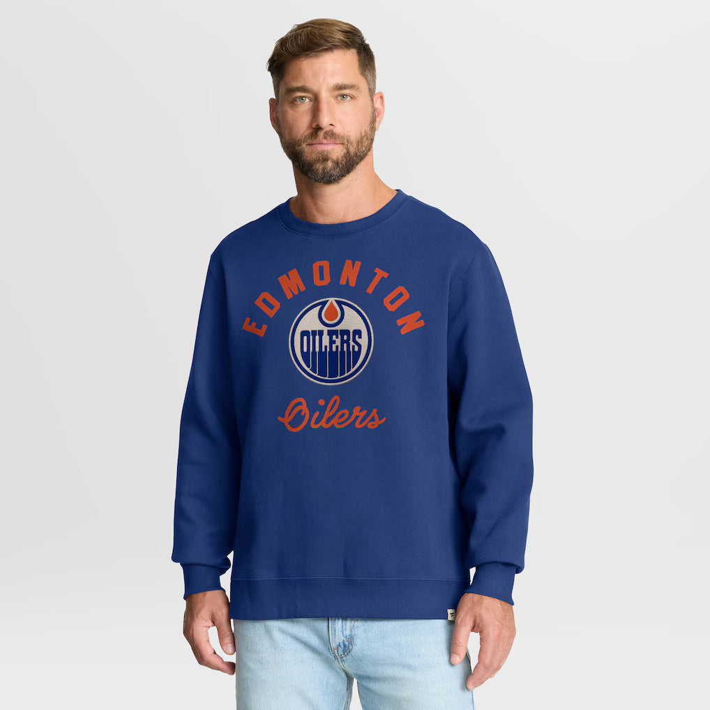 Embrace cold weather in this Edmonton Oilers Stickler Sweatshirt by Fanatics. The heavyweight fleece fabric keeps you warm and comfy during those chilly game days at the rink or watching from home. Team details displayed across the chest make it clear you're dedicated to cheering on the Edmonton Oilers.