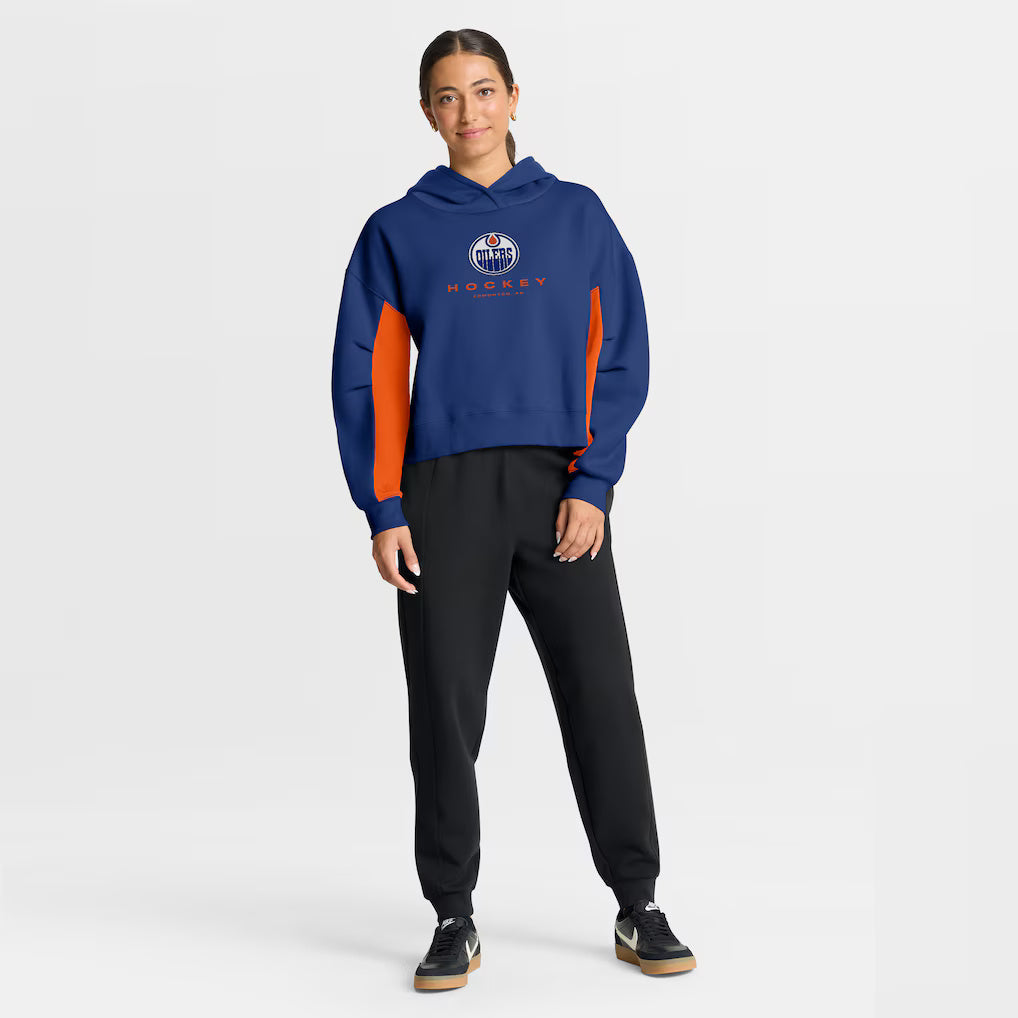 Stay comfy in fashionable Edmonton Oilers outerwear with this Back Check Boxy Hoodie by Fanatics. Heavyweight fleece fabric delivers cozy warmth and an extra-soft feel. The relaxed, boxy fit and dropped shoulders provide ample room for laid-back movement in this Edmonton Oilers hoodie.