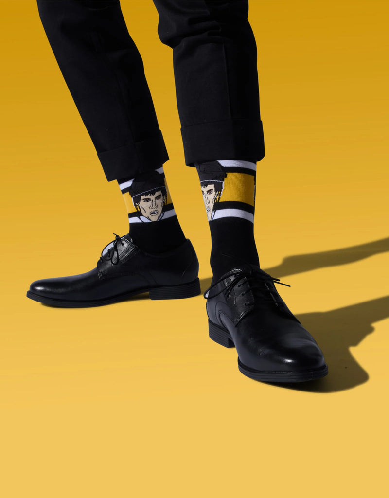 Major League Socks provide great comfort with stylish patterns of your favorite athletes. The Canadian company features the faces of some notable hockey players of present and past generations. From the legends of the past like Wayne Gretzky, Teemu Selanne and Mario Lemieux to the stars of the present like Connor McDavid, Auston Matthews and Sidney Crosby, these socks are more than just your everyday socks. They are trading cards you can wear.