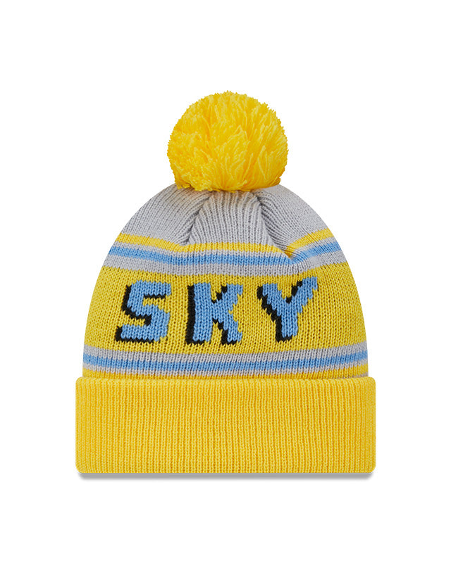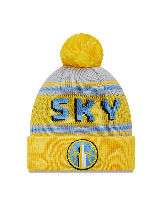 The Chicago Sky WNBA Team Pom Knit features a Sky logo at the brim with a team wordmark at the crown and a one-time removable pom.
