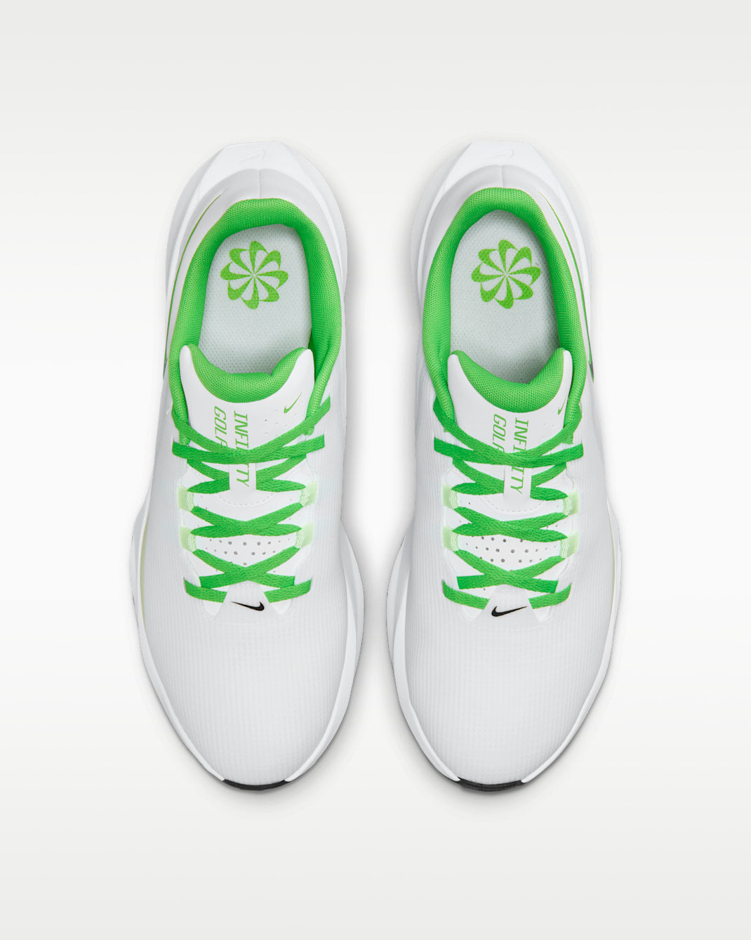 Give your on-course athleticism the full green light in the Infinity G NN. These shoes are perfect for today's game: sleek and fast. Its running-shoe inspired build can help you uncoil your backswing or uncork a chip from the rough to the green. Plus, a revamped outsole pattern is ideal for wet weather.