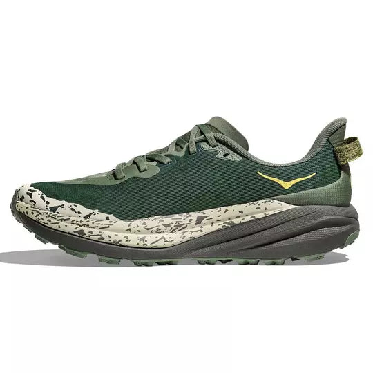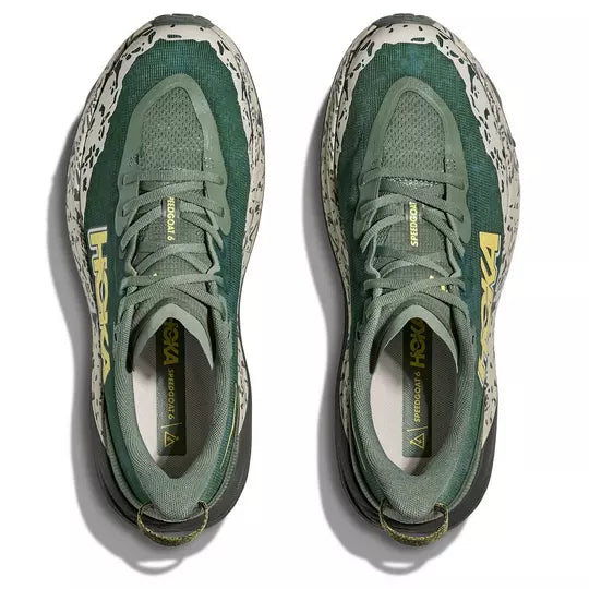 A grippy, responsive ride for technical terrain. There’s only one GOAT on the trail. And this is it. Combining HOKA’s tried and true cushioning with aggressive traction and ultralight materials, the Speedgoat 6 was born to tame the trail. A workhorse for technical terrain, this recent reissue was refined with a breathable woven textile upper, foot-hugging internal chassis, plusher dual gusset tongue, and revised lug orientation inspired by the hoof of a goat (what else?)