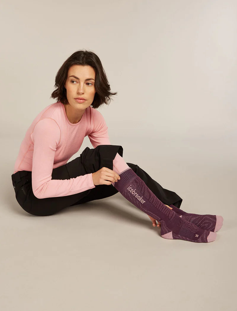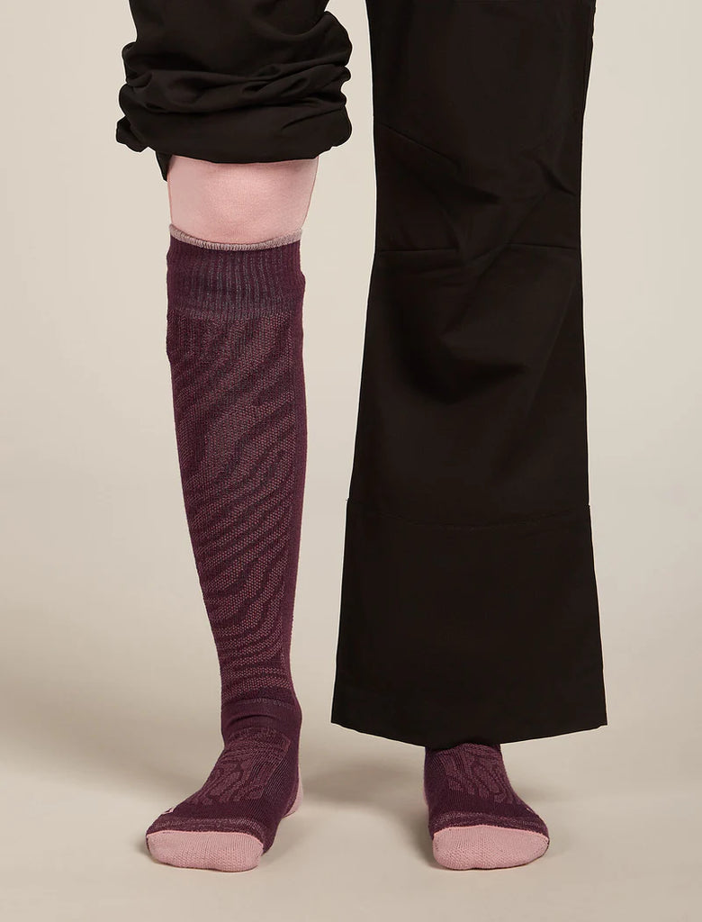 Fully cushioned ski socks for skiing the resort or the backcountry, the Merino Blend Ski+ Medium Over the Calf Mountain Contour socks are made with a durable, breathable merino wool blend. The all-over print draws inspiration from the intricate patterns of a mountain's elevation lines.