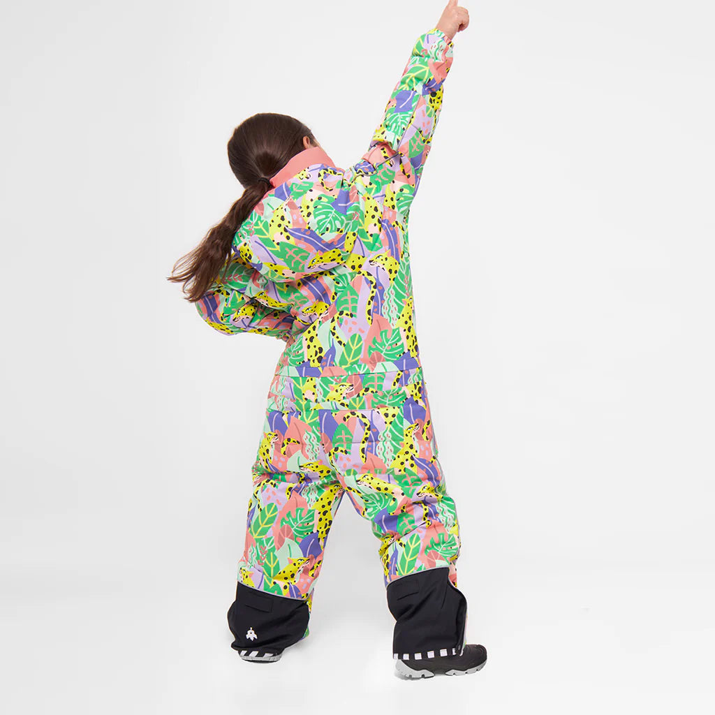 Ready to rock the winter - in your style? The WeeDo COSMO CANDY JUNGLE children's snowsuit with a wild all-over print is made for all girls who are just as at home in the city as they are on the board. Bright colors, playful jungle elements and a look that is as cute as it is bold - this suit is not a compromise between coolness and style, but a statement all its own: loud, wild, self-confident.