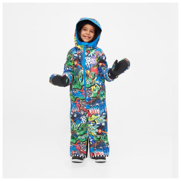 The style? Street art meets snow sports. Bright colors, cool patterns and a design that is as individual as the child wearing it. This snowsuit doesn't scream; it sparkles - with energy, creativity and the desire to move. And that's exactly what it delivers: maximum freedom of movement, reliable warmth, strong weather protection and features you can rely on - when snowboarding, skiing or simply hanging out in the snow.