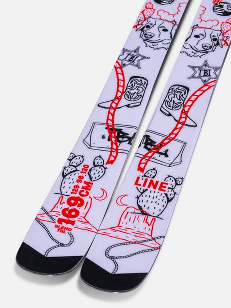 Taylor Lunquist's pro model ski, the LINE Blend TBL. Inspired by Taylor's unique style, grit, and determination to change the game forever, the Blend TBL represents the go-to ski for innovation, style, and creativity in the park and the streets. Available in a full-size run, the Blend TBL is just like its counterpart down to the 98mm waist width and reinforced chassis, with a graphic inspired by Taylor.