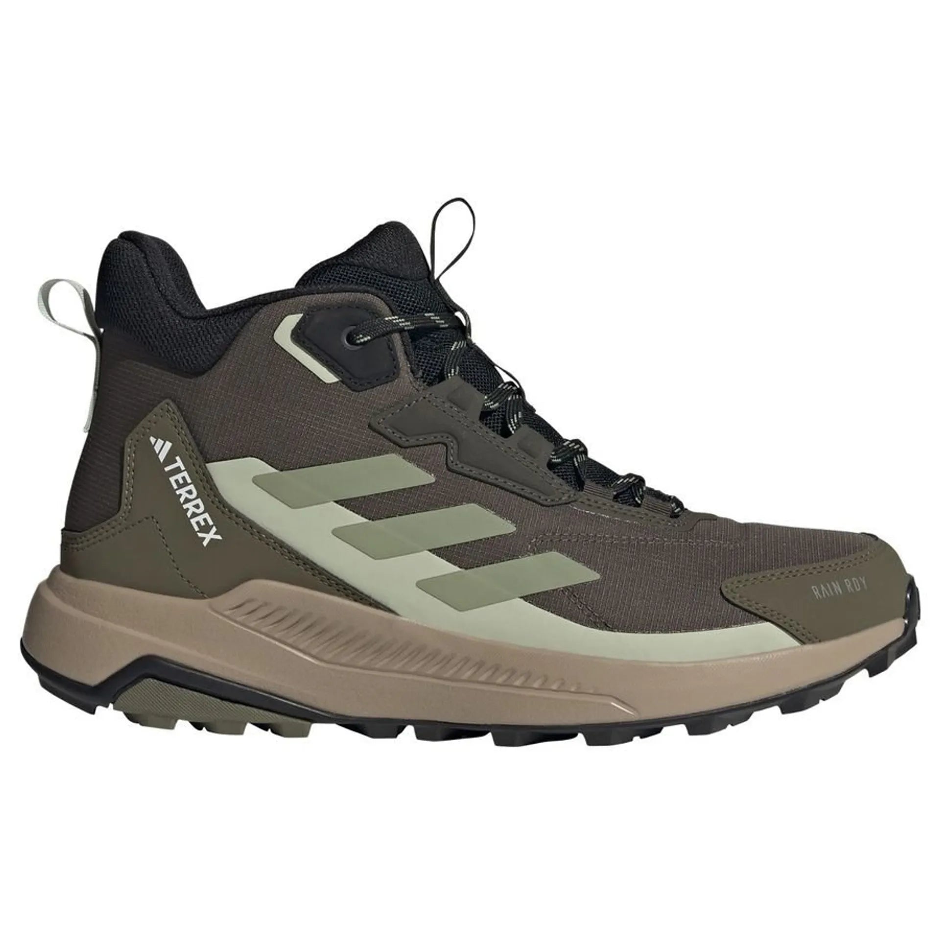 Wander. Roam. Explore. Lace up these adidas Terrex hiking shoes and explore high and low, wet or dry. A mid-height cuff offers ankle support, and a cushioned midsole delivers lasting comfort. RAIN.RDY works with a gusseted tongue to seal out the elements, keeping your feet dry and comfortable in wet conditions. Built for durability over the long haul, they feature a Traxion outsole for a sure-footed grip.By choosing recycled, adidas are able to reuse materials that have already been created, which helps to reduce waste. Renewable materials choices will help us to remove our reliance on finite resources. Our products made with a blend of recycled and renewable materials feature at least 20% total of these materials.