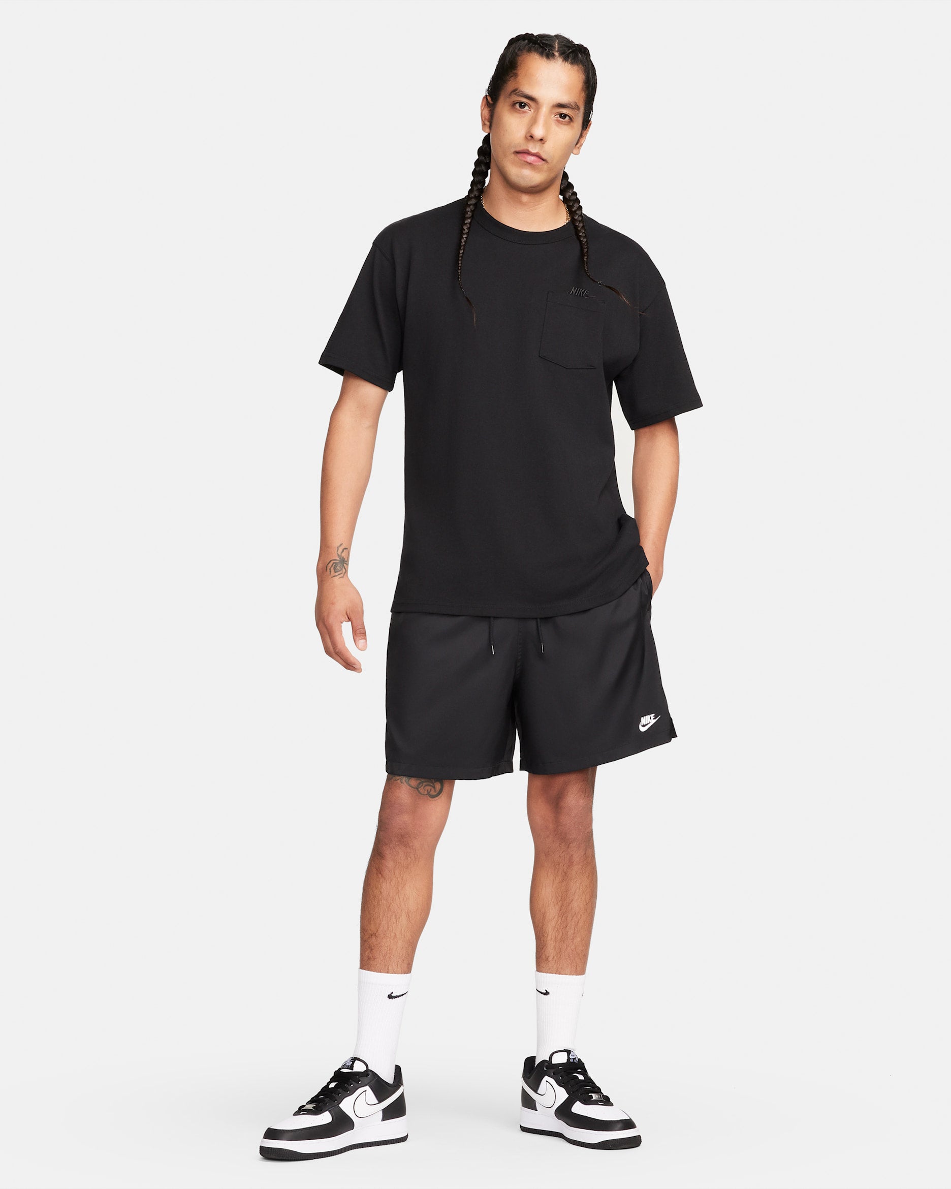 Embroidered Nike Futura logo at left thigh