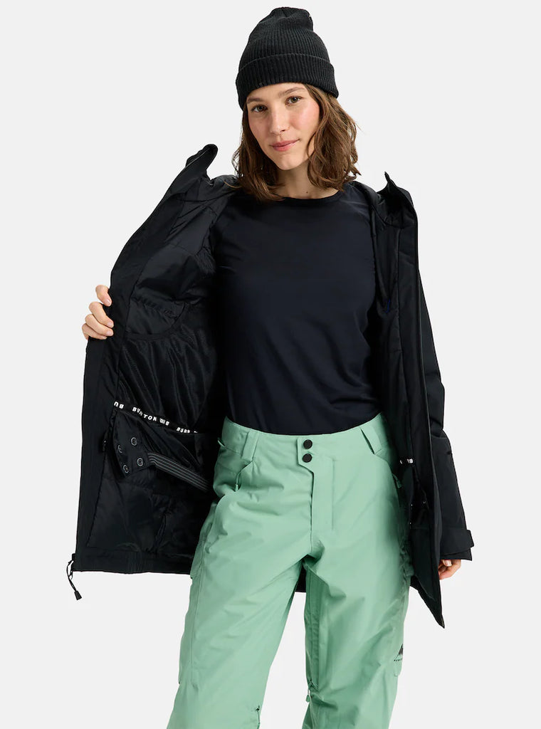 You can ride out the coldest days warm and dry in the women's Burton Reserve 2L Insulated Jacket. Our high-performance, two-layer, waterproof, breathable construction with fully-taped seams and insulation throughout keeps you focused on the fun through cold lift rides and stormy weather. A complete package of rider-designed features gives you all the venting, adjustability, and functional pockets you need to dial in your comfort on the mountain.