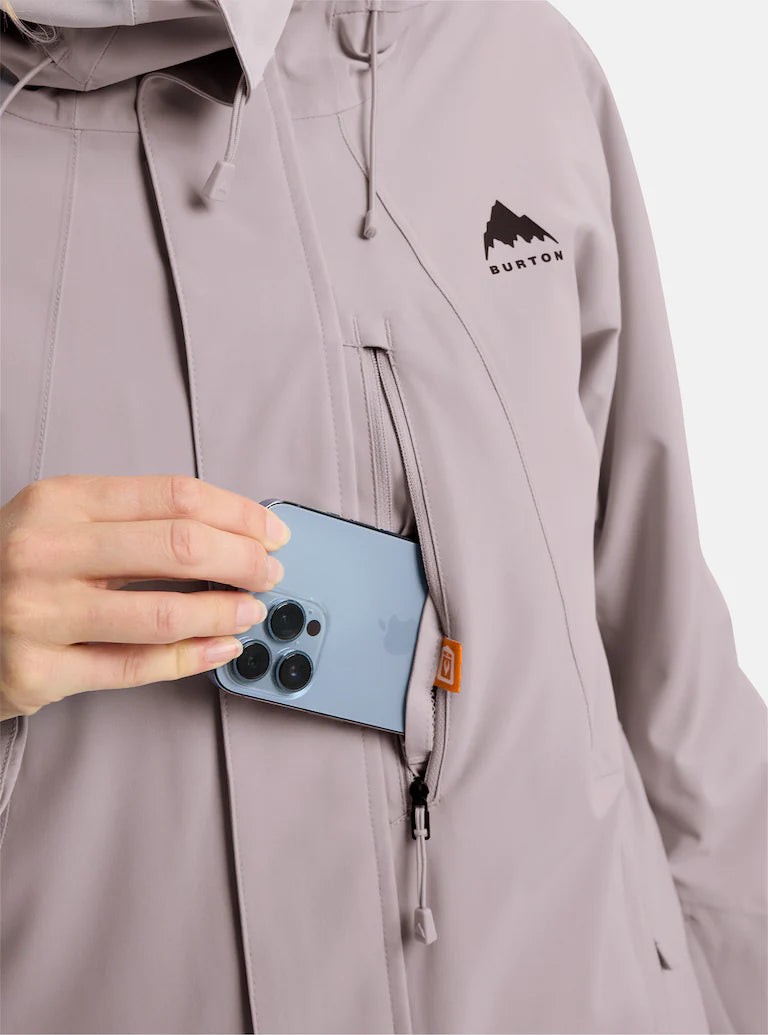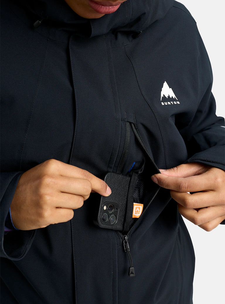 Technical and versatile with a more tailored fit, you can ride out the coldest days warm and dry in the women's Burton Reserve 2L Insulated Stretch Jacket. Cut for a slimmer fit than our regular cut, stretch fabric maintains full mobility to twist and flex. Our high-performance, two-layer storm construction with fully-taped seams and insulation throughout keeps you focused on the fun through cold lift rides and stormy weather. A complete package of rider-designed features gives you all the venting, adjustability, and functional pockets you need to dial in your comfort on the mountain.