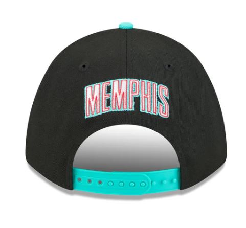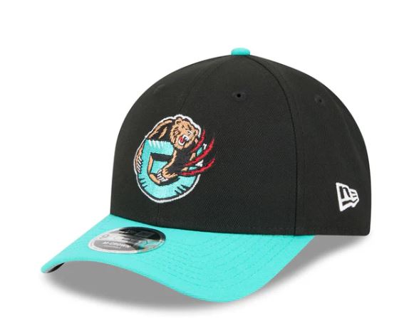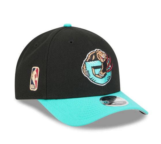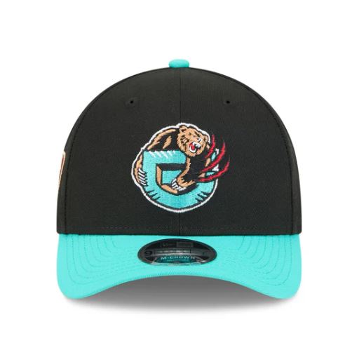 The Memphis Grizzlies 2025 Classic Edition 9FORTY M-Crown Snapback features an embroidered Grizzlies logo at the front panels with a matching team wordmark above a snapback closure at the rear. Additional details include an NBA Logoman patch at the right-wear side with a gray undervisor.