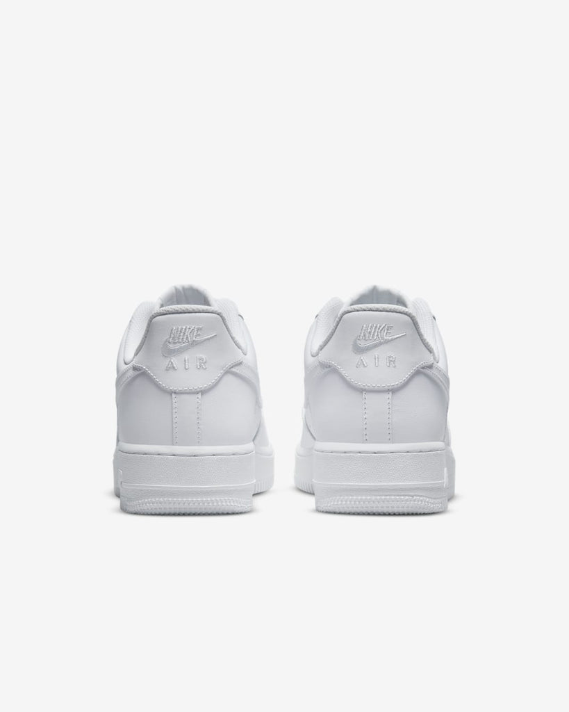 The radiance lives on in the Nike Air Force 1 ’07, the b-ball OG that puts a fresh spin on what you know best: crisp leather, clean colorways and the perfect amount of flash to make you shine. This clean, pure white finish adds the gum sole contrast for a fresh, versatile look with just the right amount of pop.