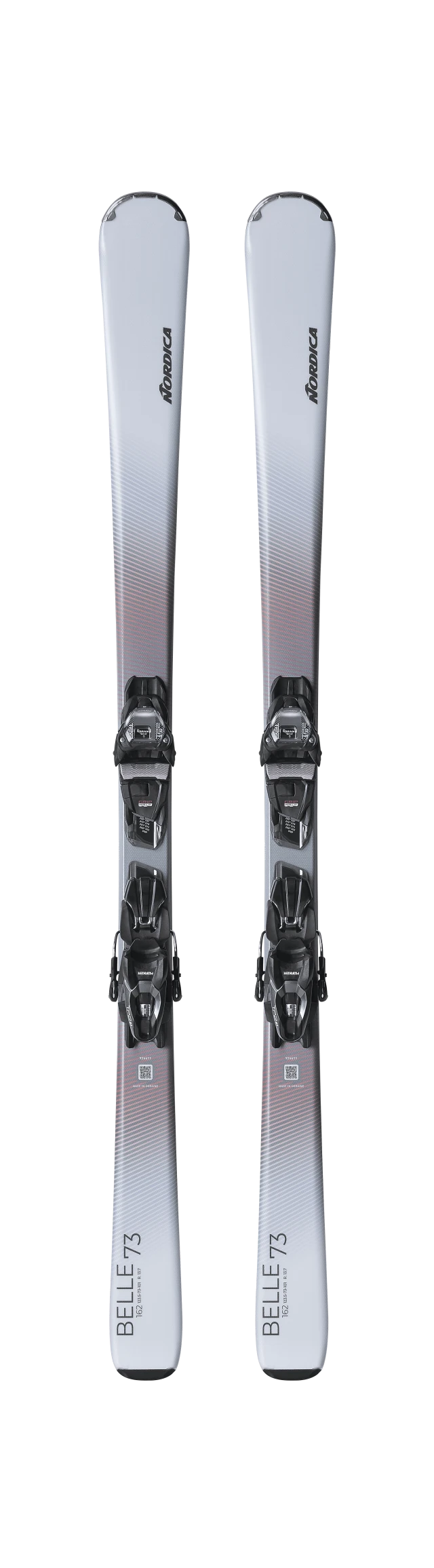 Nordica’s Belle 73 fuels your love for skiing. Playful and confident, this women’s ski is designed specifically for beginners and intermediates who love to ski on-piste. The Belle 73 is easy to maneuver and provides a smooth and stable ride that amplifies fun. A shorter binding plate boosts your ability to flex the ski and initiate turns. And by lowering the position of the rear plate, Nordica’s Natural Stance technology creates a more natural, centered position that maximizes control. Chase down your passion for skiing with Nordica’s Belle 73.