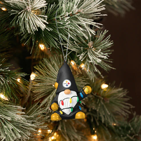 Pittsburgh Steelers Christmas Tree Gnome with Lights Ornament.
