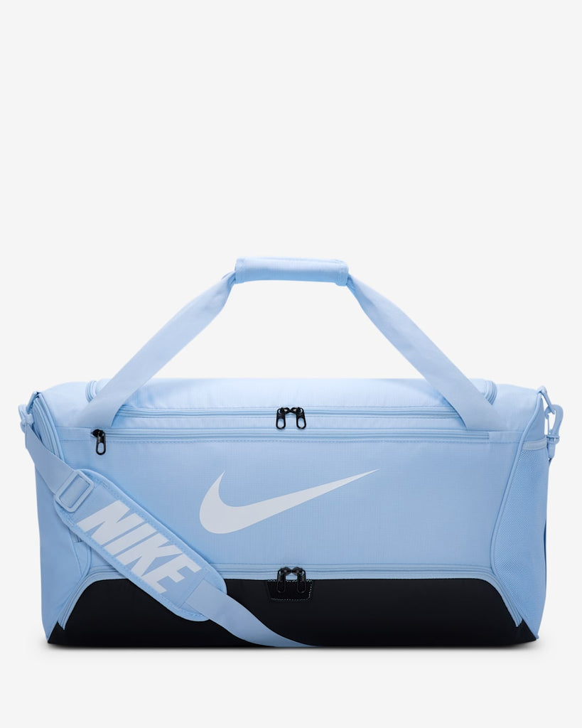 The spacious and durable Nike Brasilia Duffel Bag keeps all your training gear at hand. A side compartment stores shoes separately, while inner and outer pockets help you stay organised. This product is made from at least 65% recycled polyester fibres.