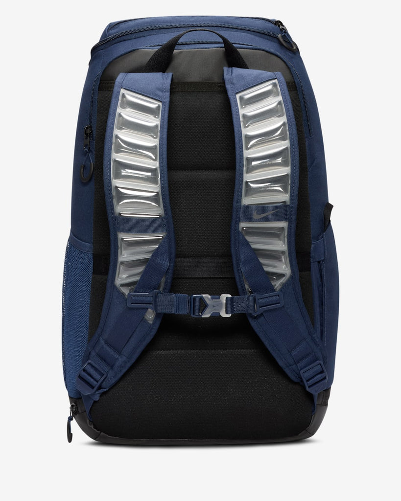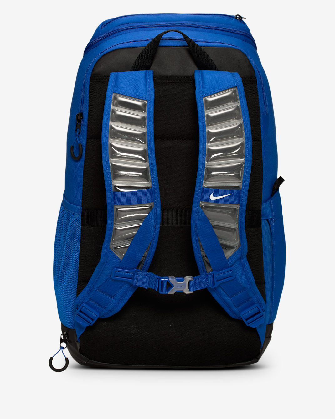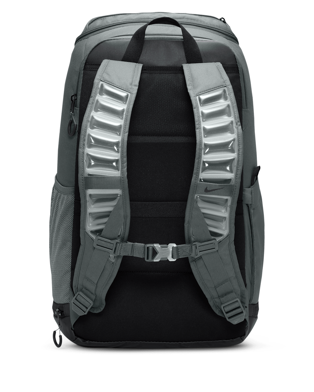 Built to support you on your fitness journey, the Nike Varsity Elite Backpack can hold anything from your water bottle to recovery tools and sneakers. The top zippered plush lined pocket of this backpack keeps your tech and essentials secure, while the ventilated bottom zippered pocket ensures your wet clothes or shoes stay separated from the rest of your belongings. The Air Max shoulder straps let you carry this backpack around in absolute comfort. Stash your training gear in style with the Nike Varsity Elite Backpack.