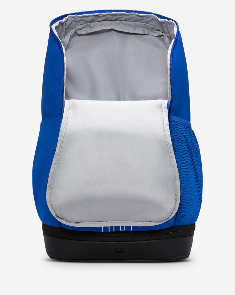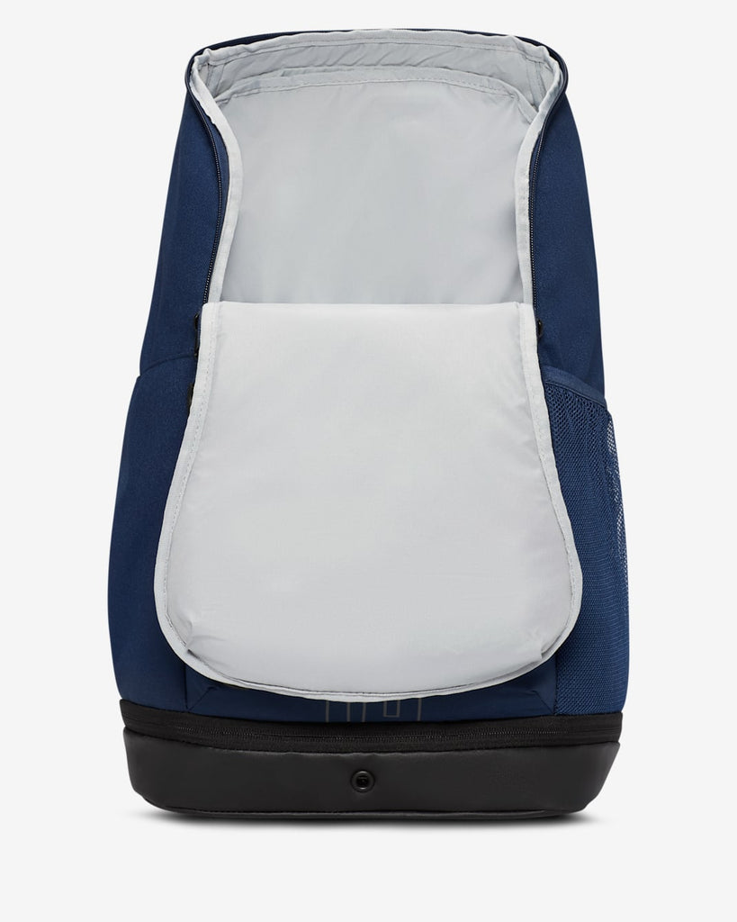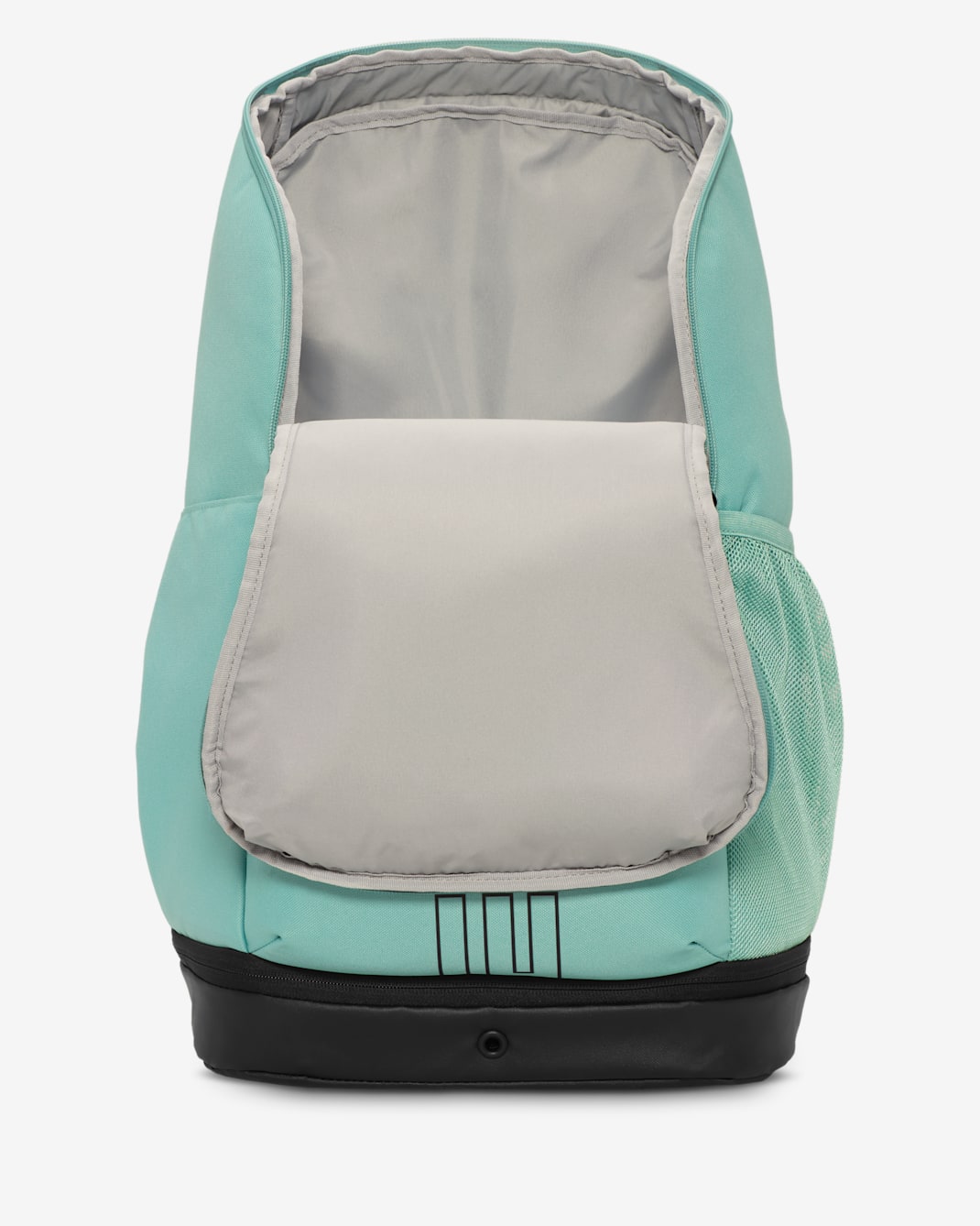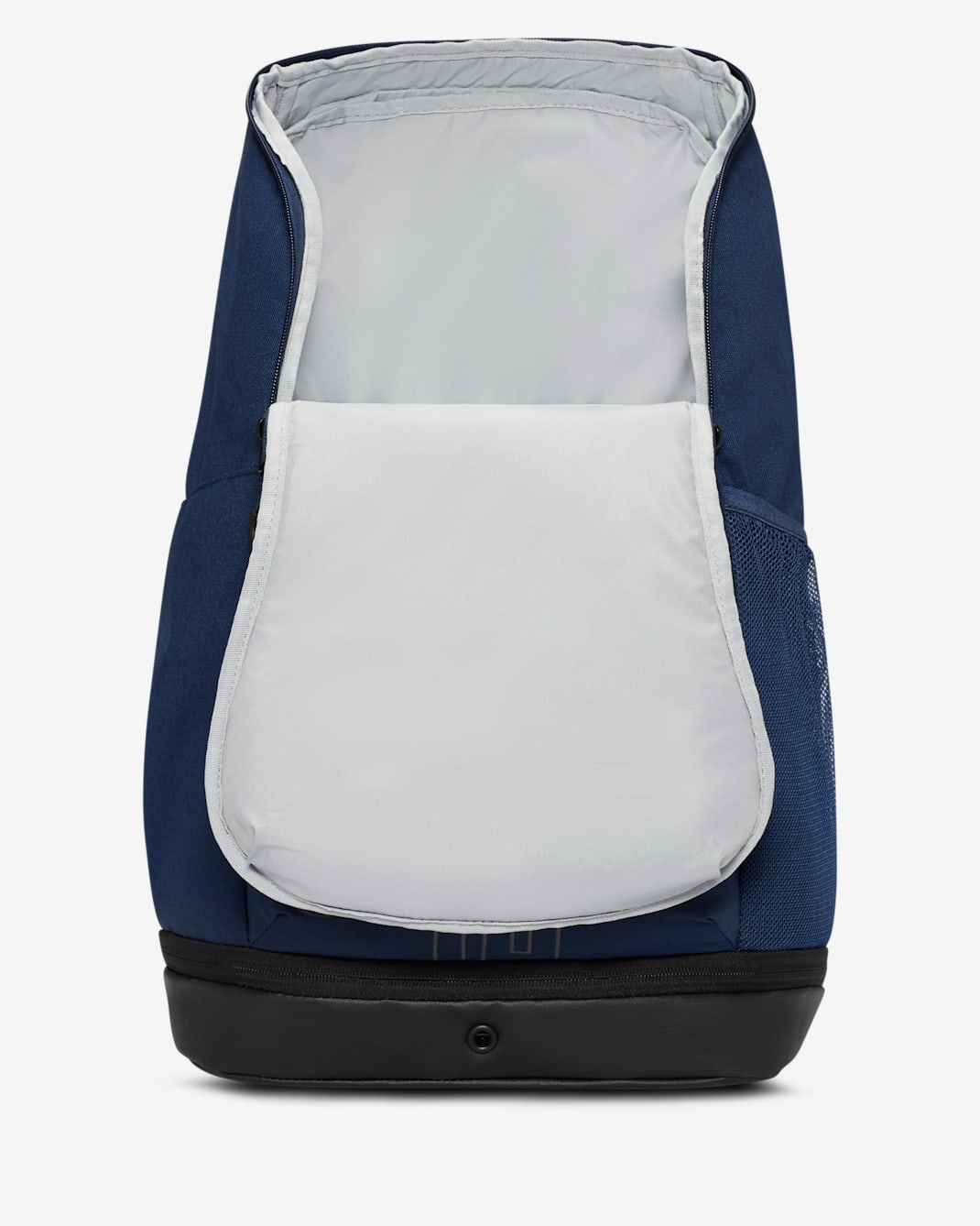 Built to support you on your fitness journey, the Nike Varsity Elite Backpack can hold anything from your water bottle to recovery tools and sneakers. The top zippered plush lined pocket of this backpack keeps your tech and essentials secure, while the ventilated bottom zippered pocket ensures your wet clothes or shoes stay separated from the rest of your belongings. The Air Max shoulder straps let you carry this backpack around in absolute comfort. Stash your training gear in style with the Nike Varsity Elite Backpack.