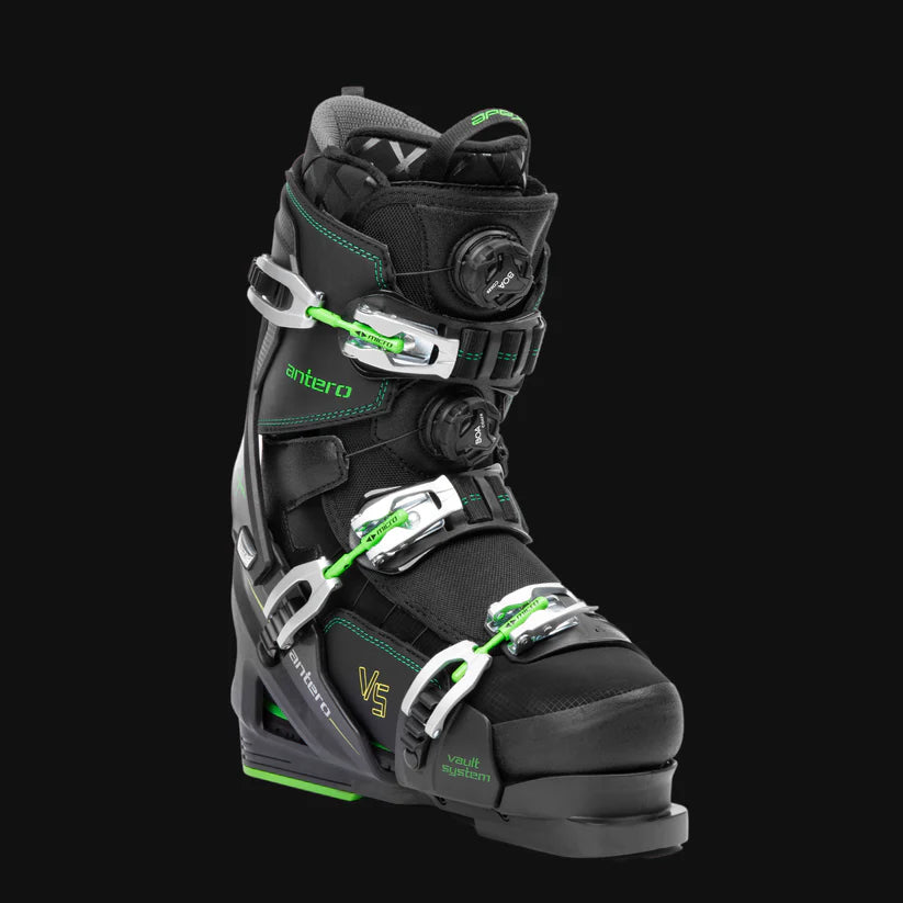 Chase your thrills on black - double black - and "other" off piste adventures in our boot built for those who enjoy testing every aspect of the mountain. Built with a carbon fiber blend that reduces weight and adds rigidity, this boots pops with energy and responsiveness. Dual stack BOA® technology and our all-new HYPERWRAP grips the lower leg for hard turns. Vibram soles offer max grip on all snow and ice conditions. Get ready for millions of feet of vertical on the most exhilarating terrain in Antero VS Carbon.