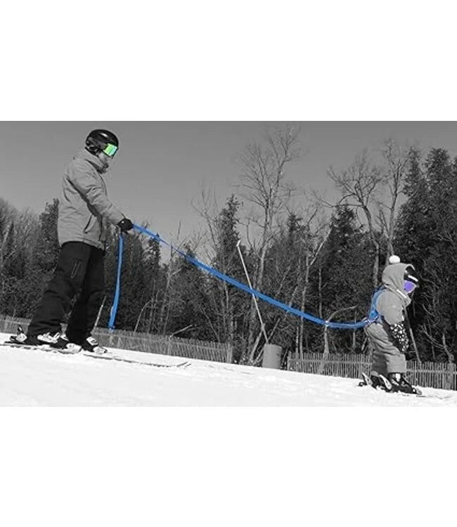 The MDXONE mini-OX is a 5 points ski harness. It includes a removable seat harness that offers extra support for your little one, a grab handle to pick up your little skier off the snow or to help out going on/off the chairlift, and a 9’static rope with two bungees, the bungees offer a smooth stop and eliminates the need of a second rope.