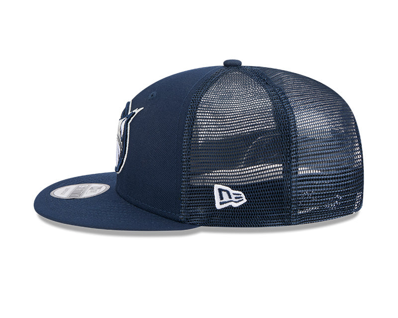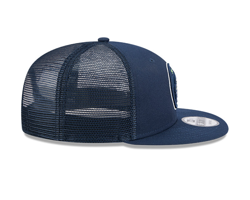 The WNBA 9FIFTY Trucker features an embroidered team logo at the front panels with a matching woven team tag at a snapback closure at the rear and a gray undervisor.