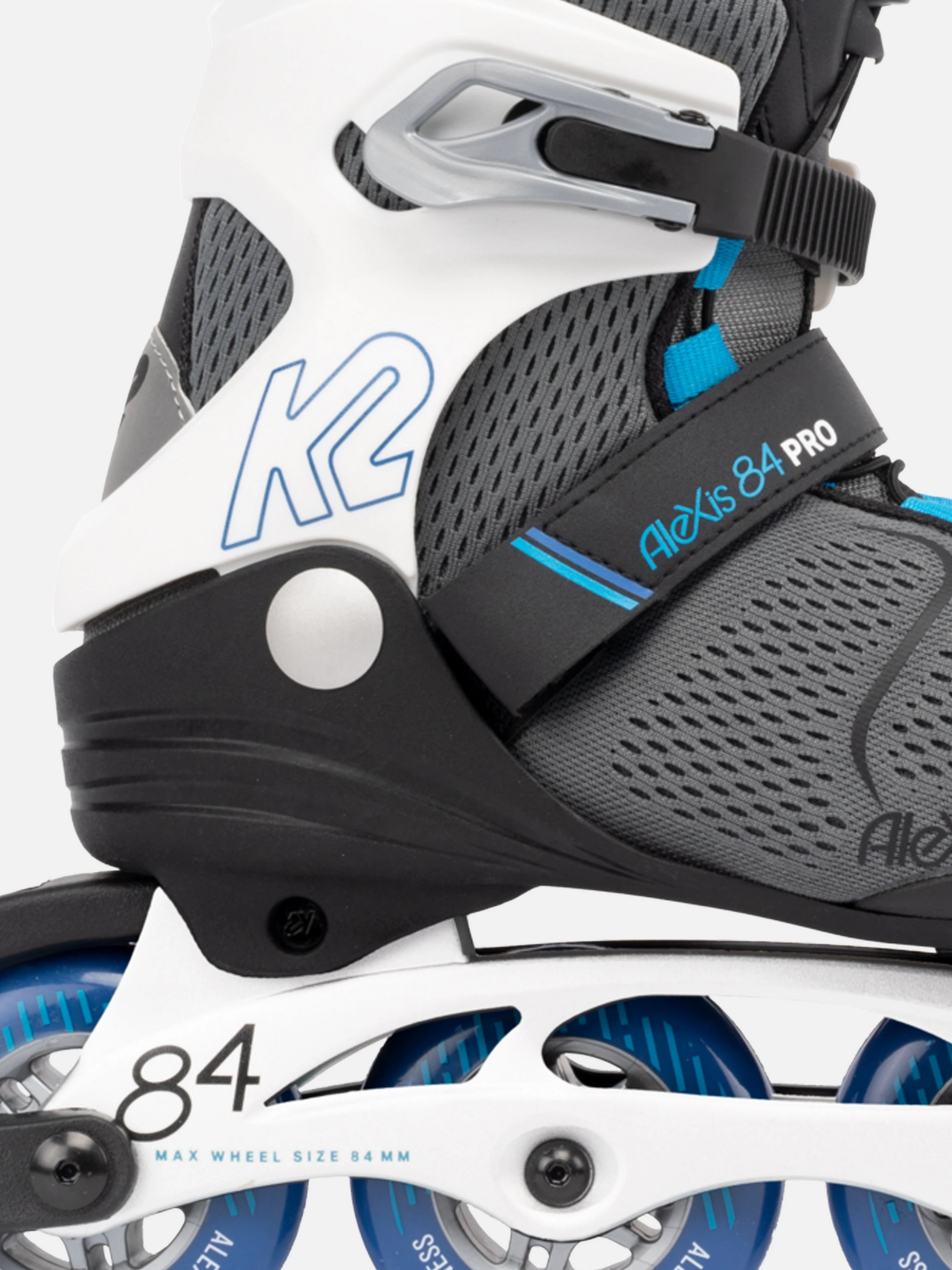 The K2 Alexis 84 Pro women's inlike skates feature 84 mm wheels all the way across on a responsive and durable stamped aluminum frame. This design delivers excellent power transfer and stability at speed. The K2 speed lacing system, allowing you to quickly secure the skates by a single pull, combined with the K2 Softboot, creates a slipper-like fit that every inline skater appreciates.