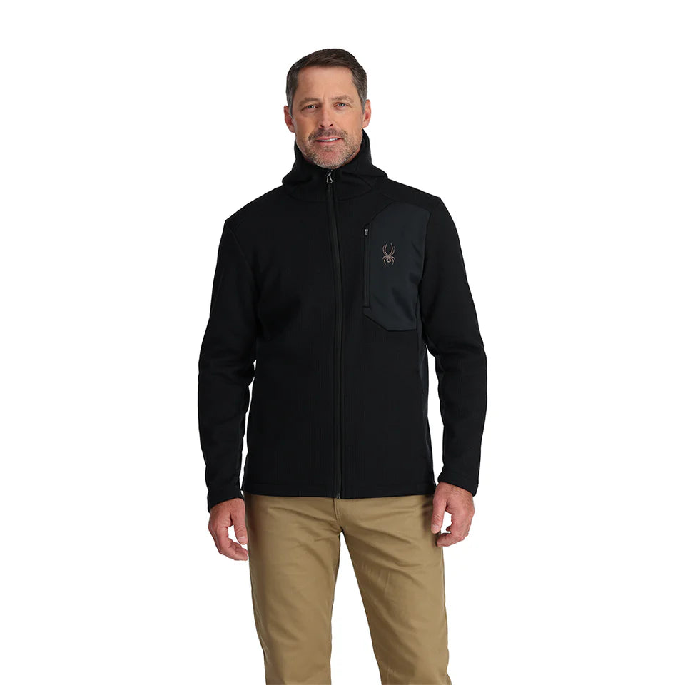 The Bandit Hooded jacket blends a classic alpine sweater style with a modern twist. Lightweight polyester sweater knit bonded to anti-pill fleece, stretch side and arm panels, and a sleek chest pocket adds functionality to this versatile layer that is perfect for a day on the mountain.