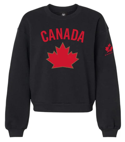 Show your love for Canadian hockey while staying cozy and stylish in the '47 Hockey Canada Women's Imprint Logo Crew Fleece. Crafted for ultimate comfort, this pullover features a soft cotton-blend fleece that delivers a relaxed fit perfect for everyday wear. The bold, screen-printed Hockey Canada logo on the chest adds a proud touch of national pride, making it the ideal choice for game days, casual outings, or lounging in comfort. Ribbed cuffs, collar, and hem provide a classic finish, while the premium midweight fabric ensures warmth without bulk.