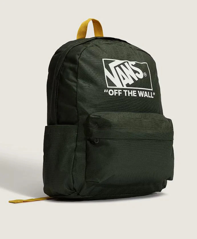 The Old Skool Backpack is a favorite for good reason. This classic backpack features an all-purpose, two pocket design with an organizer in the front, a slip-in interior pocket, and laptop sleeve that fits most 15'' laptops. Heritage details like the woven logo label bring an touch to this iconic design in a way only Vans can do.