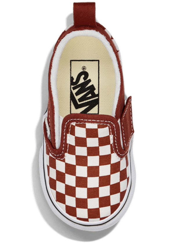 The Toddler Slip-On V remakes our Classic Slip-On with a lovely heart pattern. By adding side hook-and-loop closures and heel pulls to this iconic style, an everyday essential is given a better fit for small feet, and has even easier on-and-off access, too.