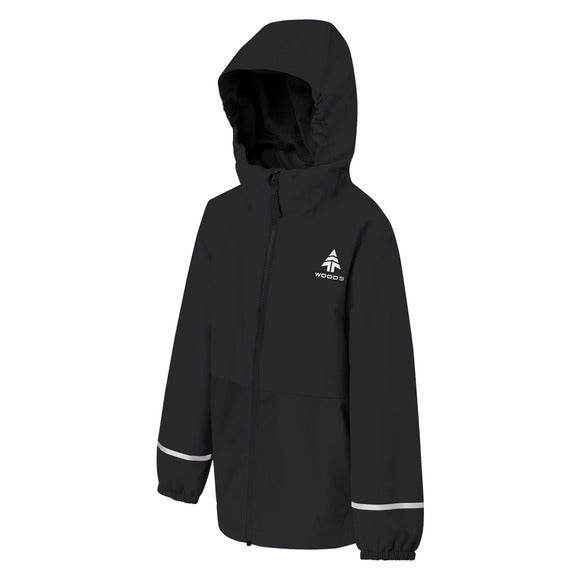 Your child will stay dry and comfortable during outdoor adventures with the Woods Burnie boys' hooded rain jacket. It features a DWR water-repellent finish, an 8K/8K waterproof and breathable membrane, and strategically sealed seams to help protect them from the elements. Plus, reflective trim improves your child's visibility when the sky is grey.