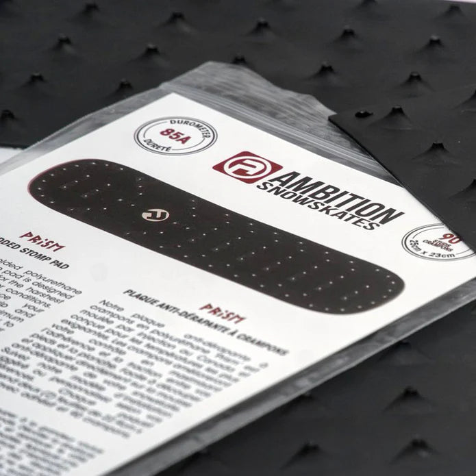 This injection molded polyurethane studded ‘Prism’ stomp pad is designed and made in Canada by Harfang Solutions for the harshest environments and weather conditions. The studs will enhance your snowskating with added grip and traction under your feet for maximum control and trick consistency. Easy to cut and stick directly onto your snowskate’s foam grip. Each pad includes two (2) 5in x 9in sheets with adhesive backing for a total of 90 studs.