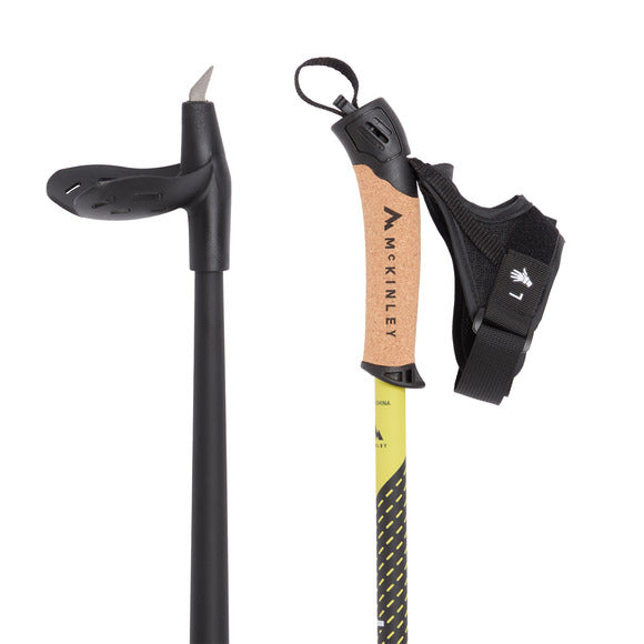 Introducing the Vision J by McKinley for nordic skiing enthusiasts of all ages. Designed to enhance your skiing experience, these poles are constructed with a 20% carbon shaft, delivering a lightweight yet sturdy performance. The 16mm diameter ensures both strength and balance. Equipped with a carbide tip, they offer grip on various terrains, while the racing basket enhances agility. The cork and polyethylene grip provides comfortable handling, and the innovative click strap system with a detachable comfort strap ensures easy adjustments.