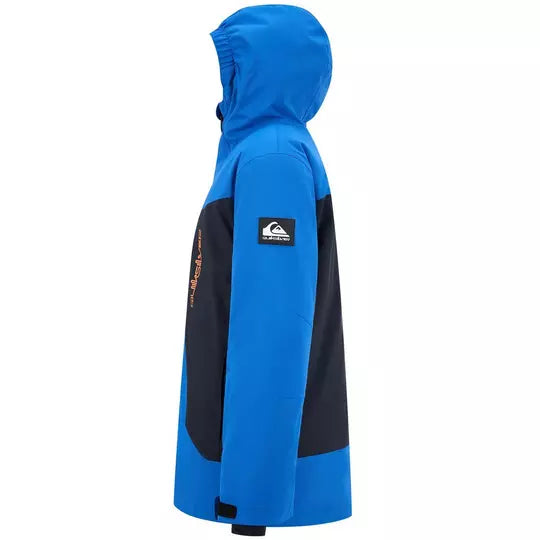 The kids' Quiksilver Logo Hit Jacket is crafted for snowboarders who want warmth, weather protection and standout style on the slopes. With 10K DryFlight waterproofing and WarmFlight Eco insulation, this kids' Quiksilver jacket keeps riders dry and warm through changing conditions. A fixed powder skirt and adjustable hood help block out snow, while mesh-lined underarm vents ensure airflow when activity ramps up. Multiple storage pockets offer room for snacks, goggles and other essentials, making it easy to stay prepared. With a sharp design and features built for performance, this Quiksilver winter jacket delivers everything young riders need for a full day of shredding.