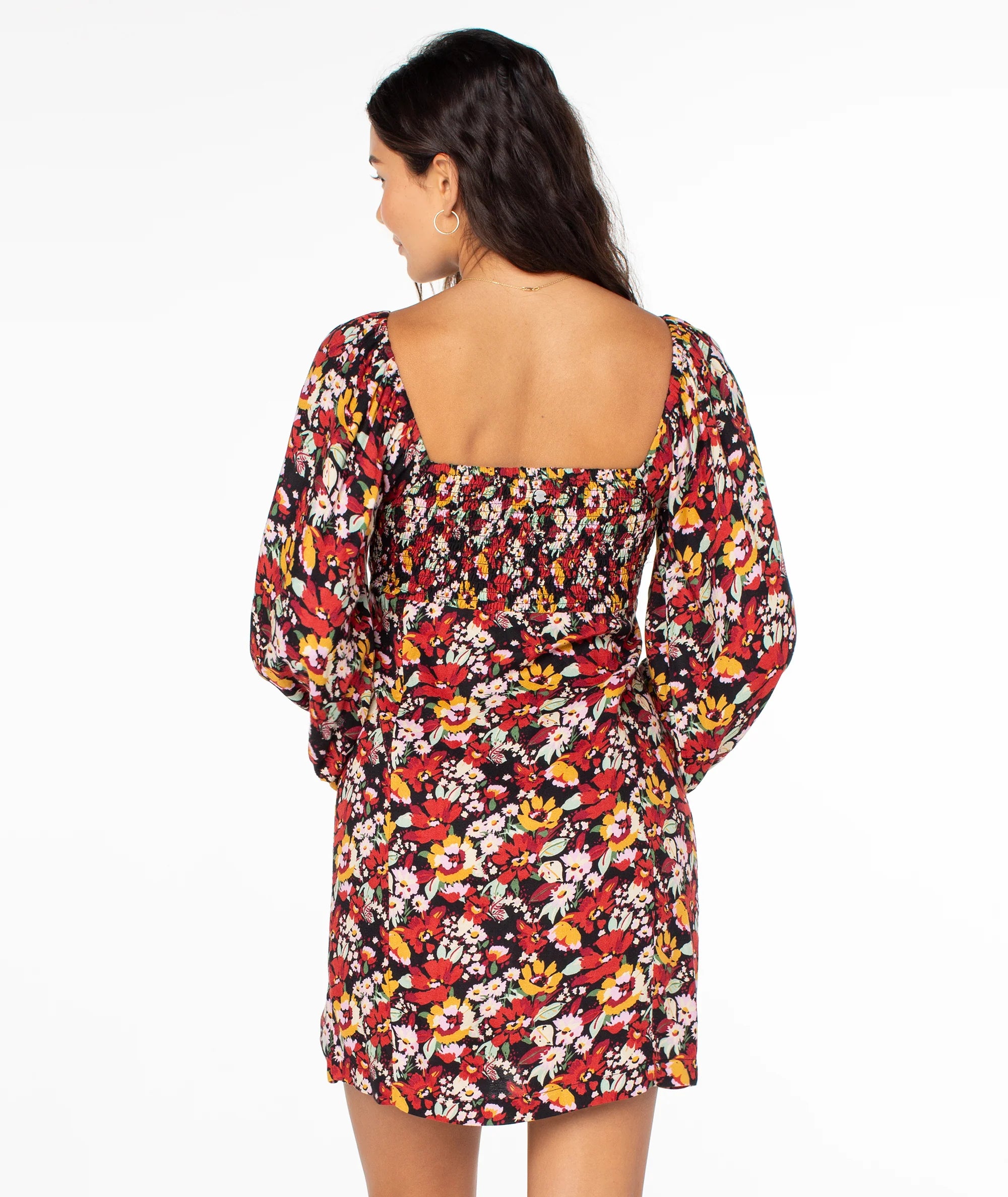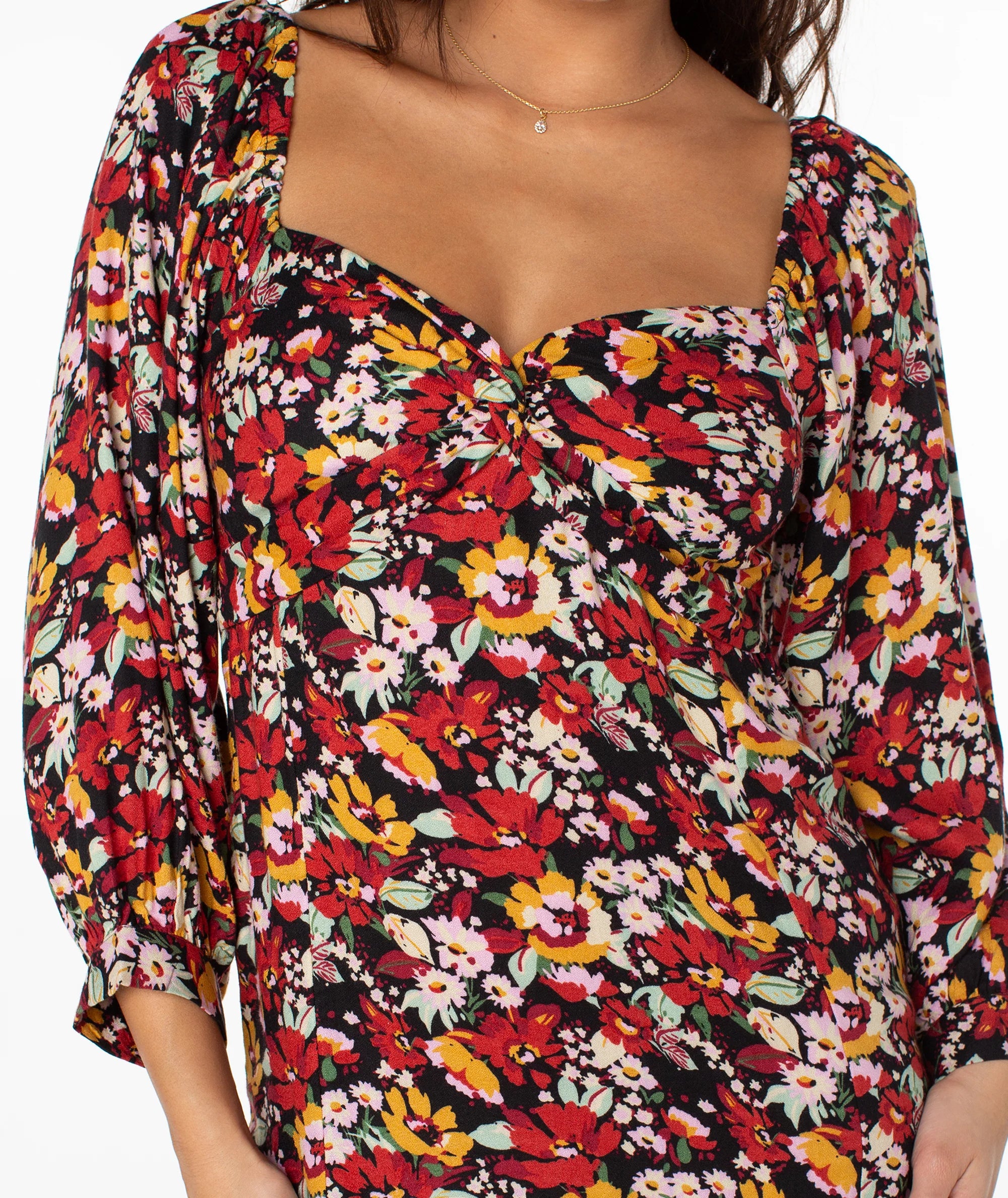 Make a flirty floral statement in the Moonlight Shores dress. This mini dress features a long puff sleeve and a sweetheart neckline, making it a perfect fit for any upscale occasion.