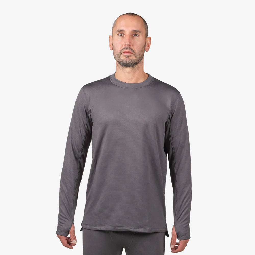 A lightweight, technical gridded fleece fabric that is moisture wicking and allows air to flow freely to keep you warm and dry. The stretchy design remains comfortable all day, all season long.